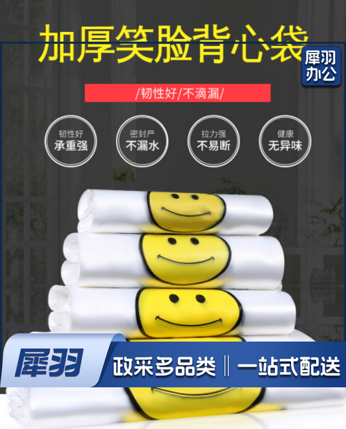 背心袋【加厚无异味 48*30cm】透明笑脸购物袋100只食品打包袋外卖塑料袋超市手提袋马甲袋 JH9006