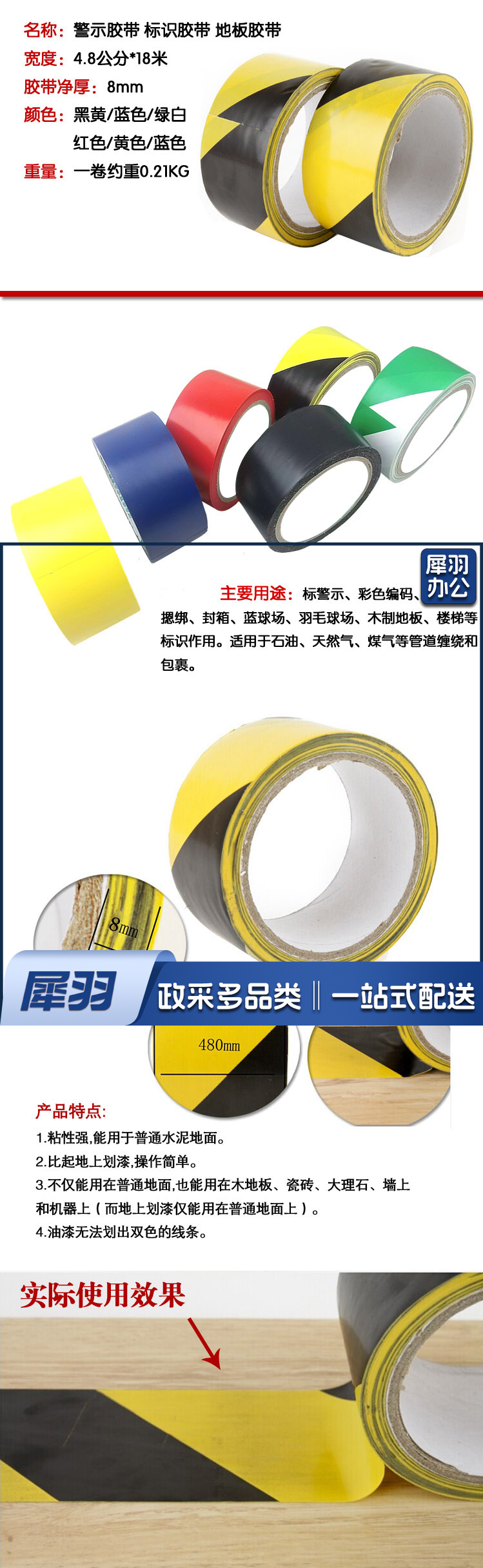 贴地胶带 警示胶带 48mm*17m 黑黄