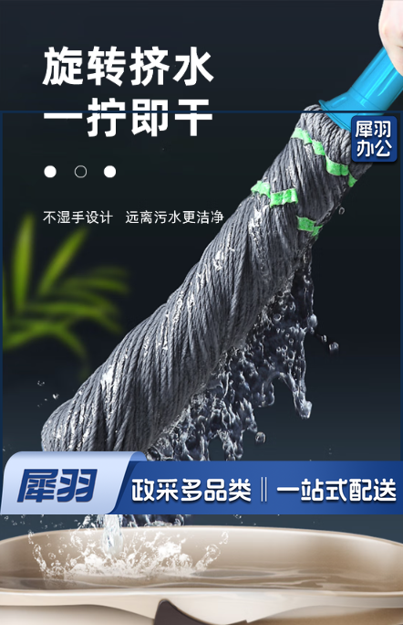 拧水纤维拖把 自拧水拖把 家庭办公室食堂用拖把 颜色随机