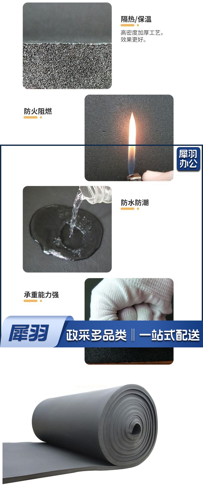 黑色保温棉 隔热棉保温棉 95cm* 650cm 厚约3cm