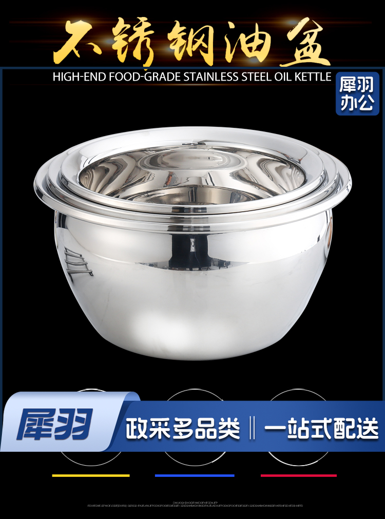 YC-8不锈钢油盆大号油鼓油桶调料味盅猪油盆加厚打蛋盆商用装油缸带盖