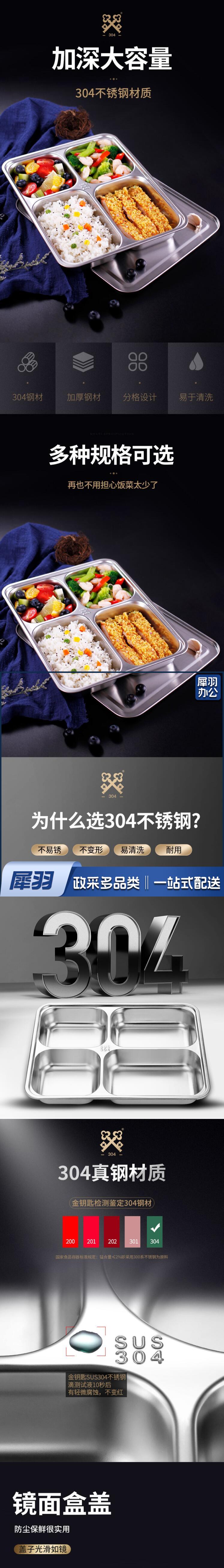 金钥匙 304不锈钢 快餐盘加厚分格成人全钢餐盒饭盒 四格带盖GK-410KC