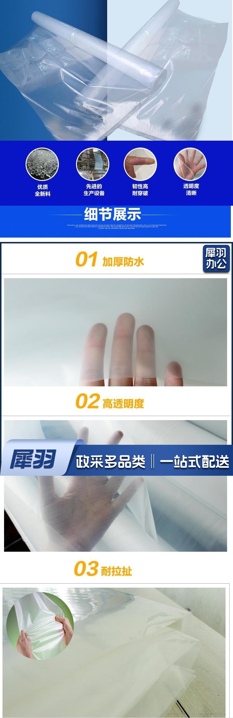防护加厚塑料布防水 2米宽 10s厚度 100m一卷 货号:JC