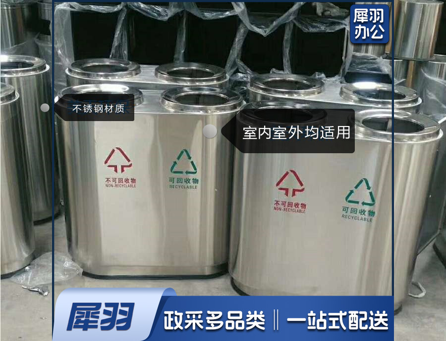 室内室外均适用 圆桶双口垃圾桶 双口分类垃圾桶 78*38*81cm