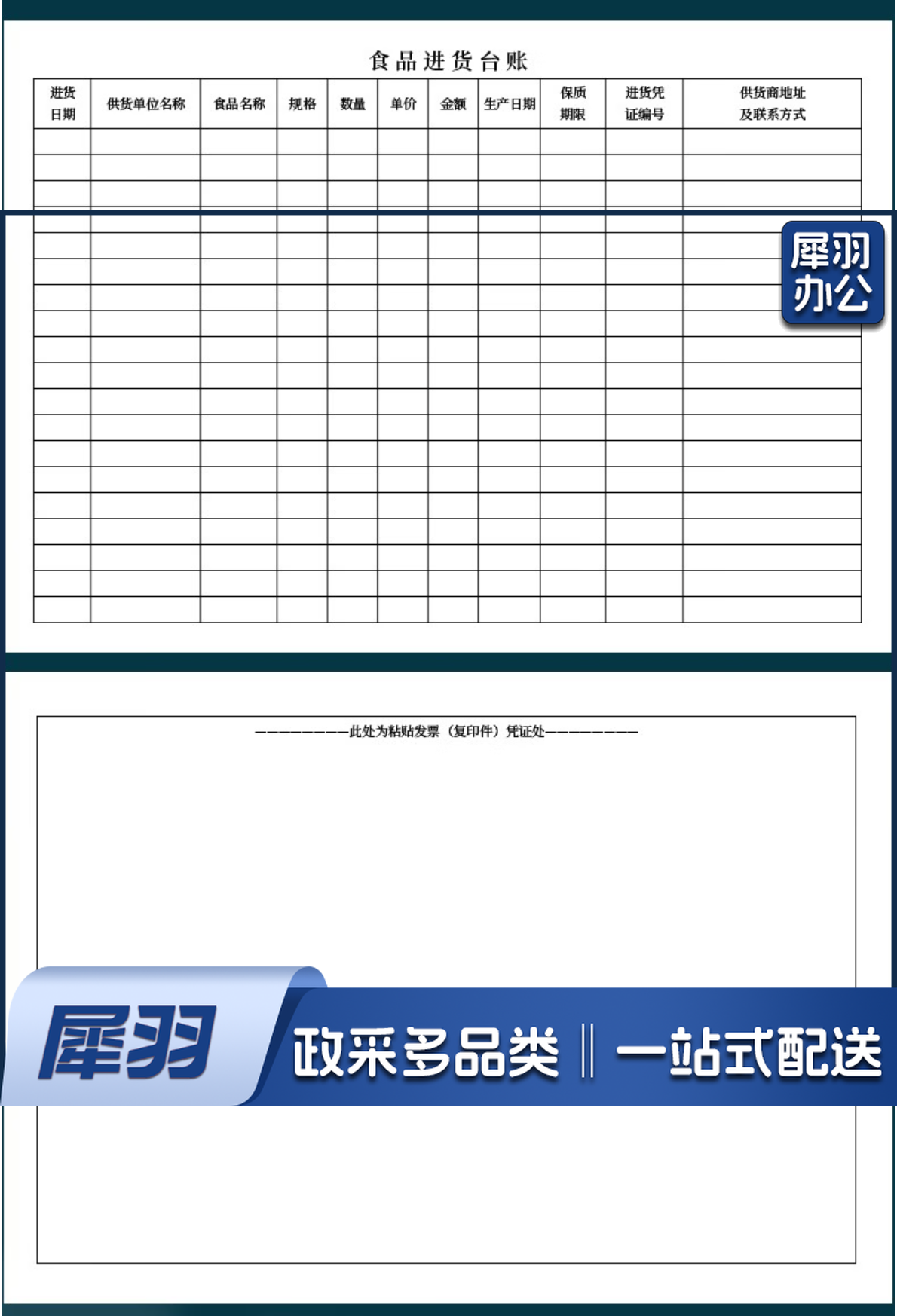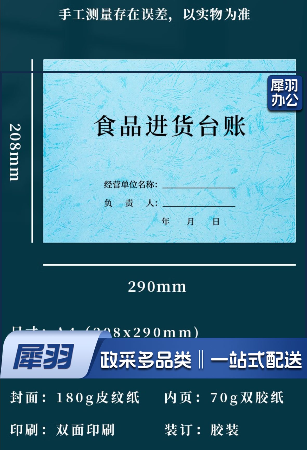 餐饮单位食品进货台账 饭店餐厅验收台帐本便利店超市材料明细账本入库记录本食品采购记录表本登记簿 蓝色款-食品进货台账 (1本装)