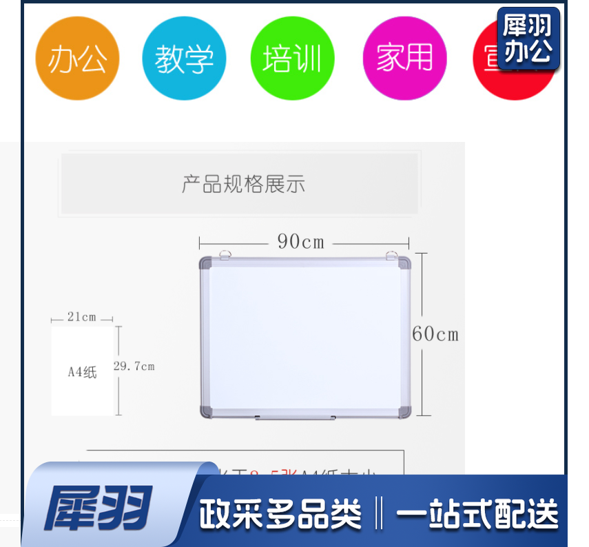 白板写字板60*90cm 磁性办公会议室家用白班挂式小白板黑板GDSM