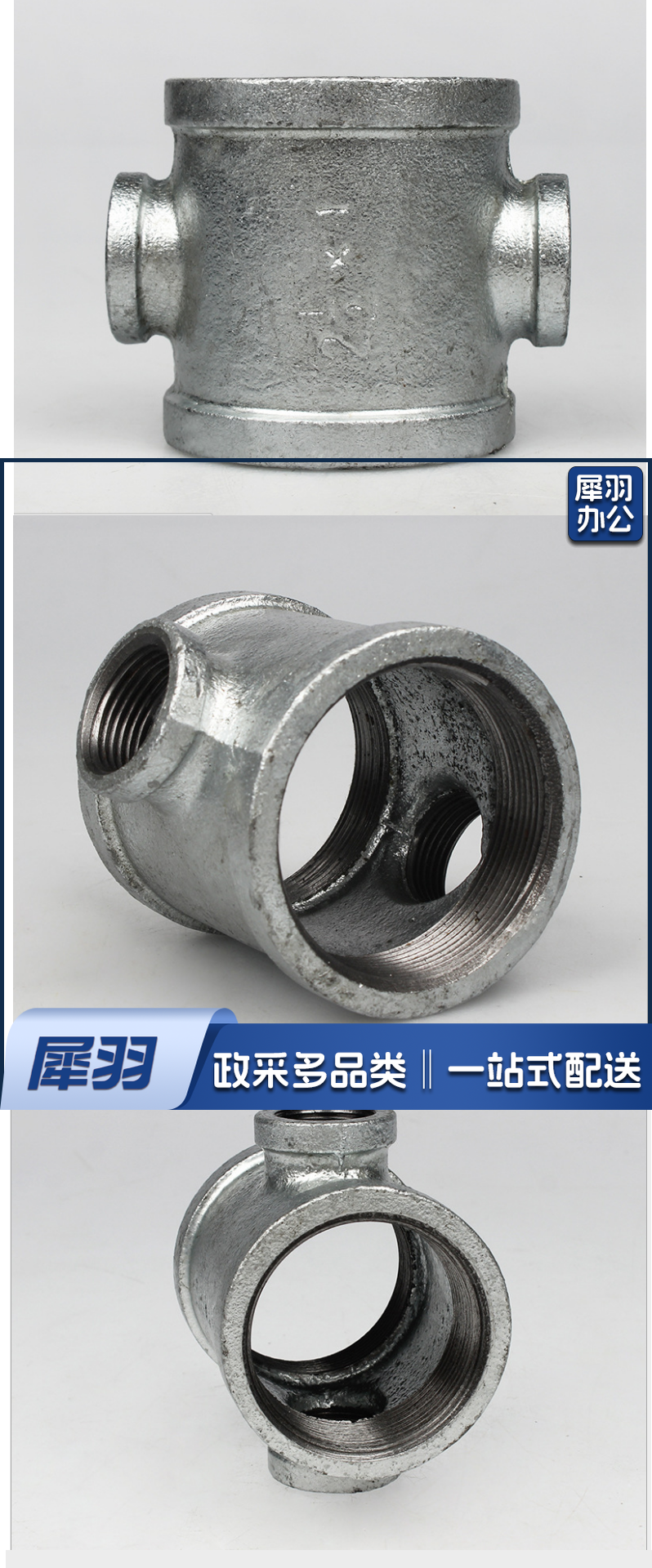 四通接头 镀锌管件异径四通 异径大小头四通 丝扣四通 变径四通50*15