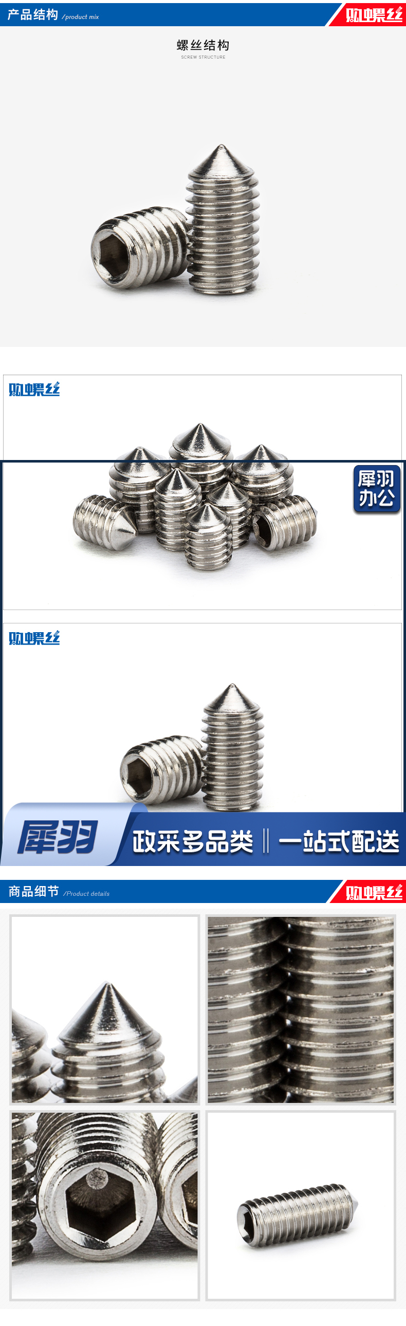 304不锈钢顶丝 无头机米螺丝 4*6mm或5*6mm 100个