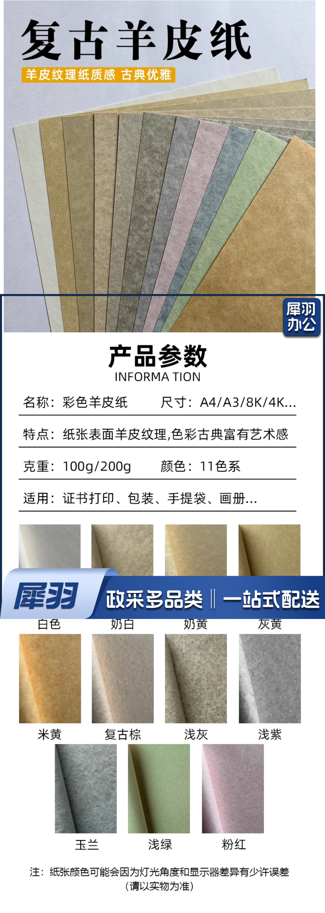 羊皮纸 复古羊皮纸 A 4 100g 11色混装 55张/包