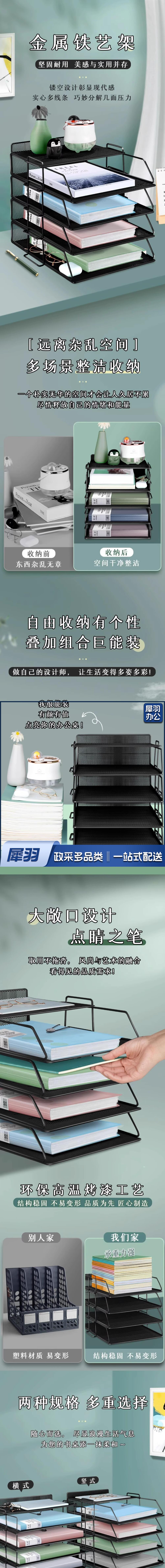 金属文件架 4层(3层+顶层置物架)桌面文件座档案收纳盒 分层文件栏