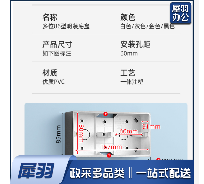 通用86型明装双联底盒 双联明盒 雅白 货号:JC
