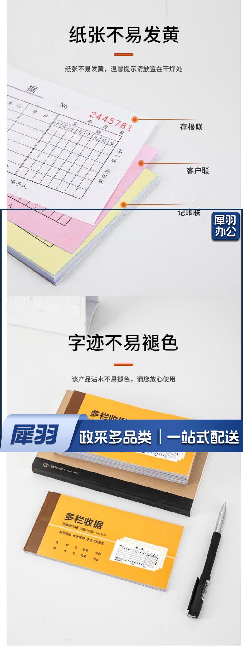 定制三联收据 100本起订 货号:JC