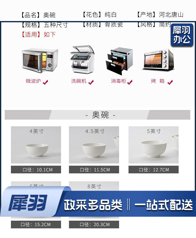 瓷侠客北欧简约陶瓷饭碗家用纯白吃米饭碗骨瓷大号面碗可微波纯色小汤碗 6英寸标准面碗【1个】