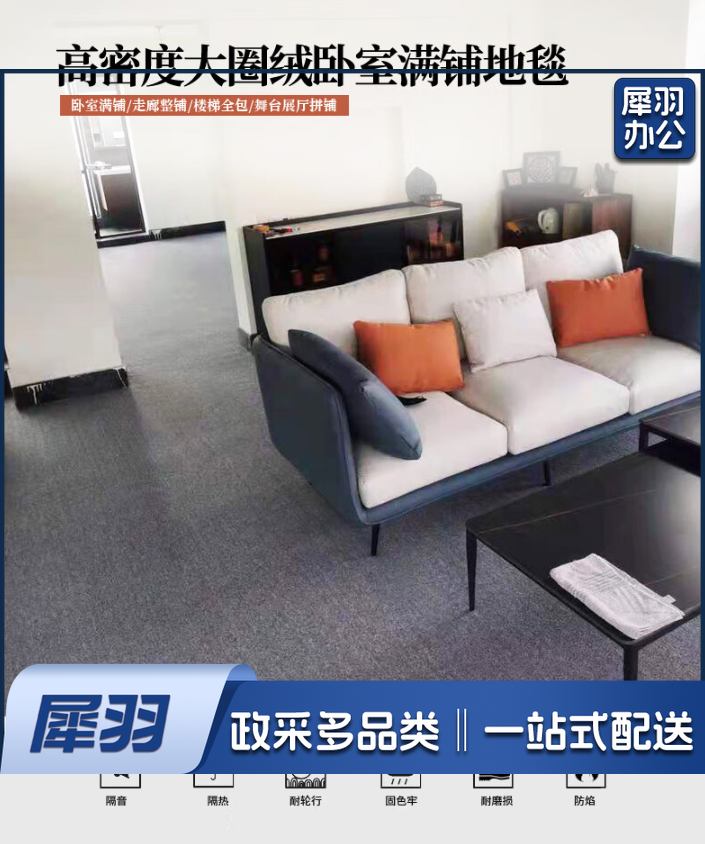 纯灰红色蓝色加密大圈绒满铺地毯办公室台球室健身房教室地毯 1平米价格(不含安装)