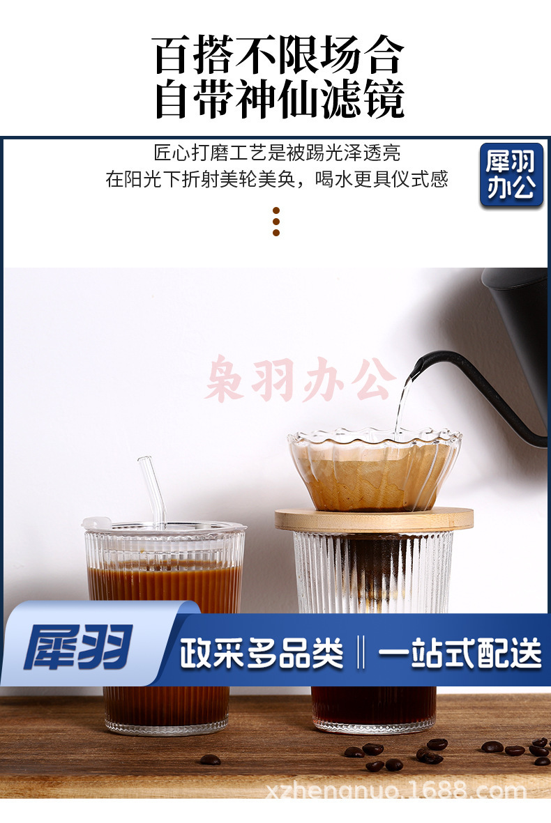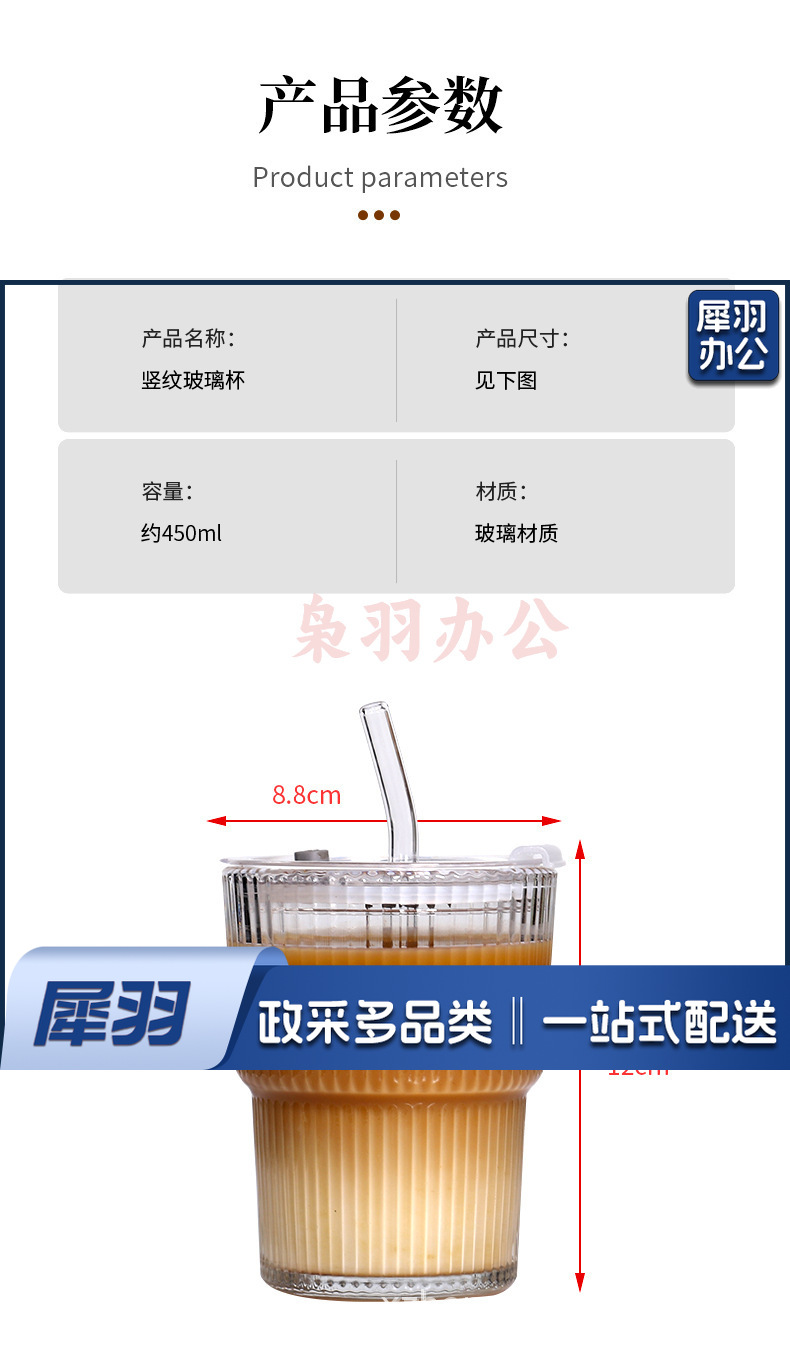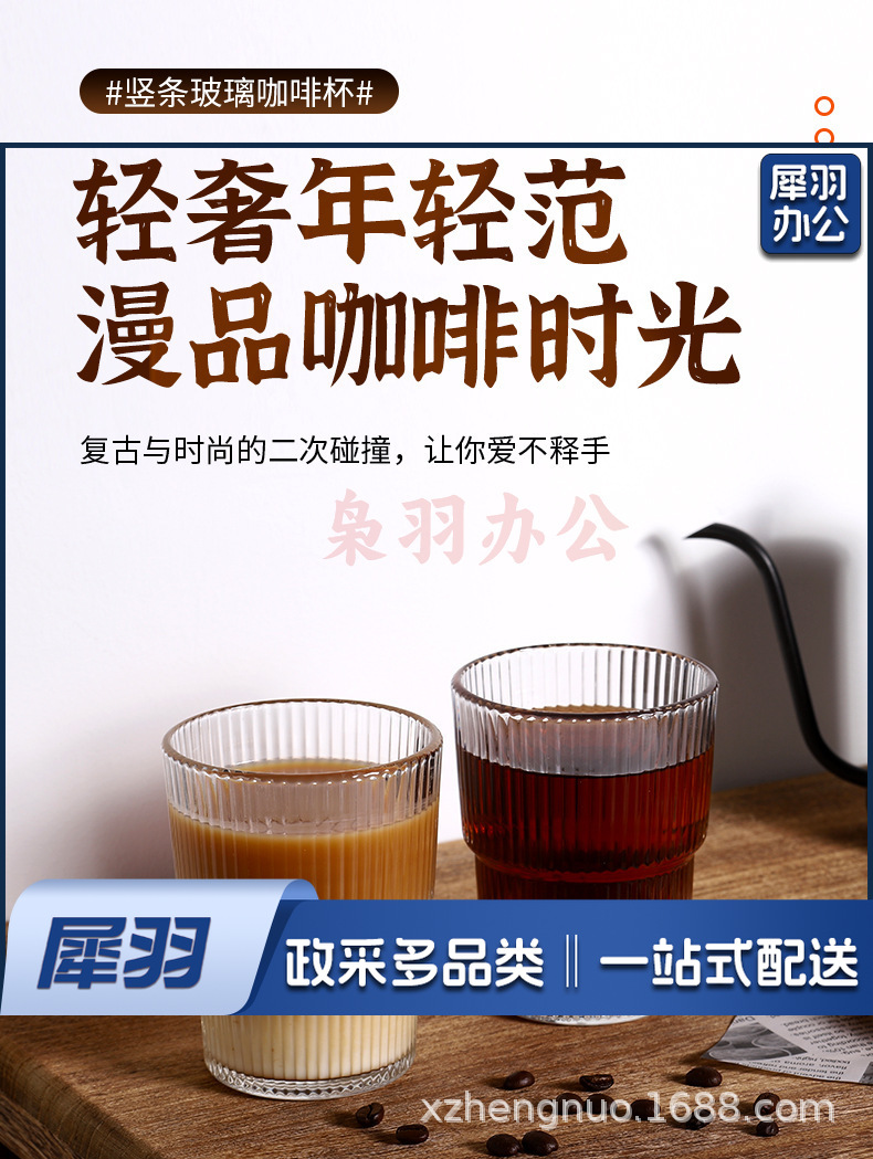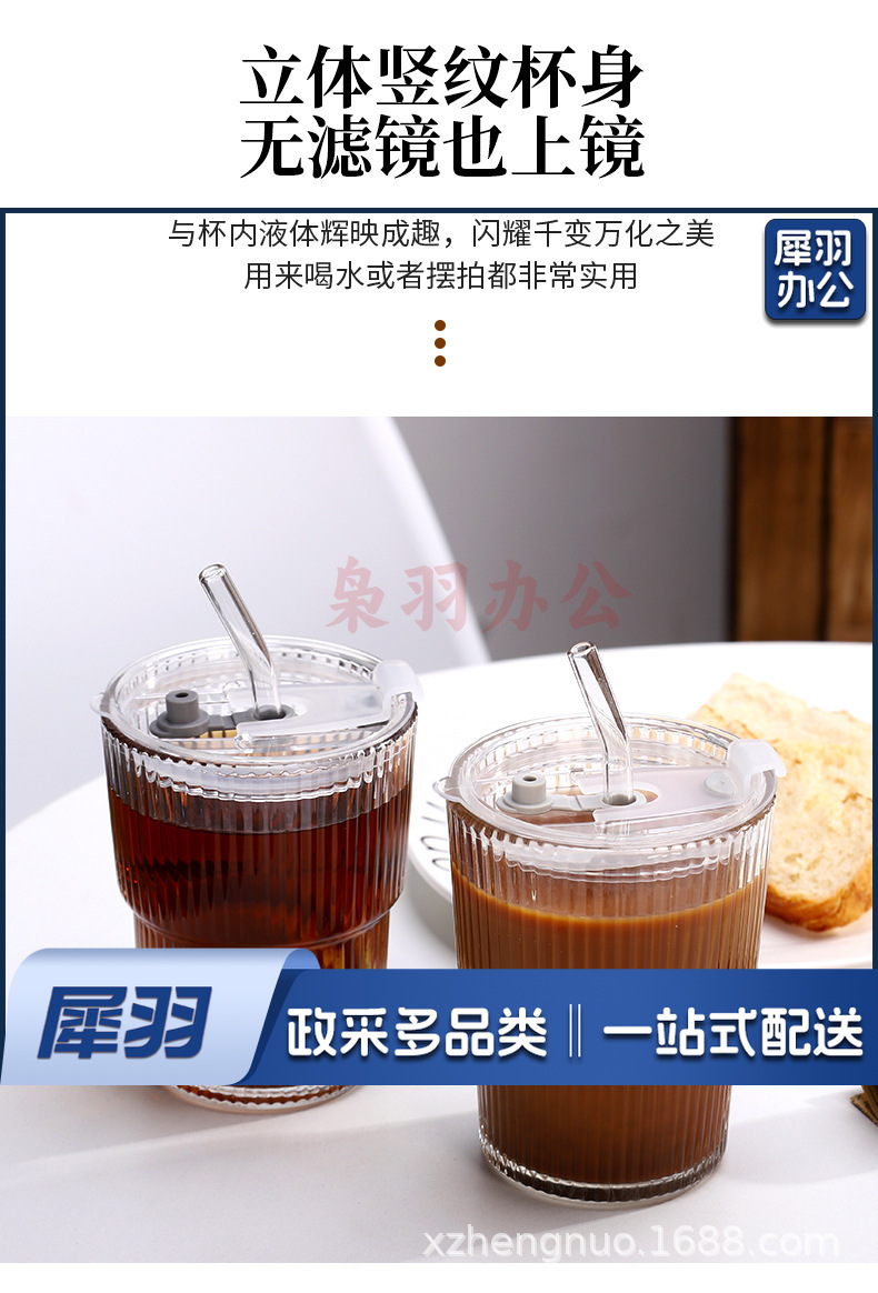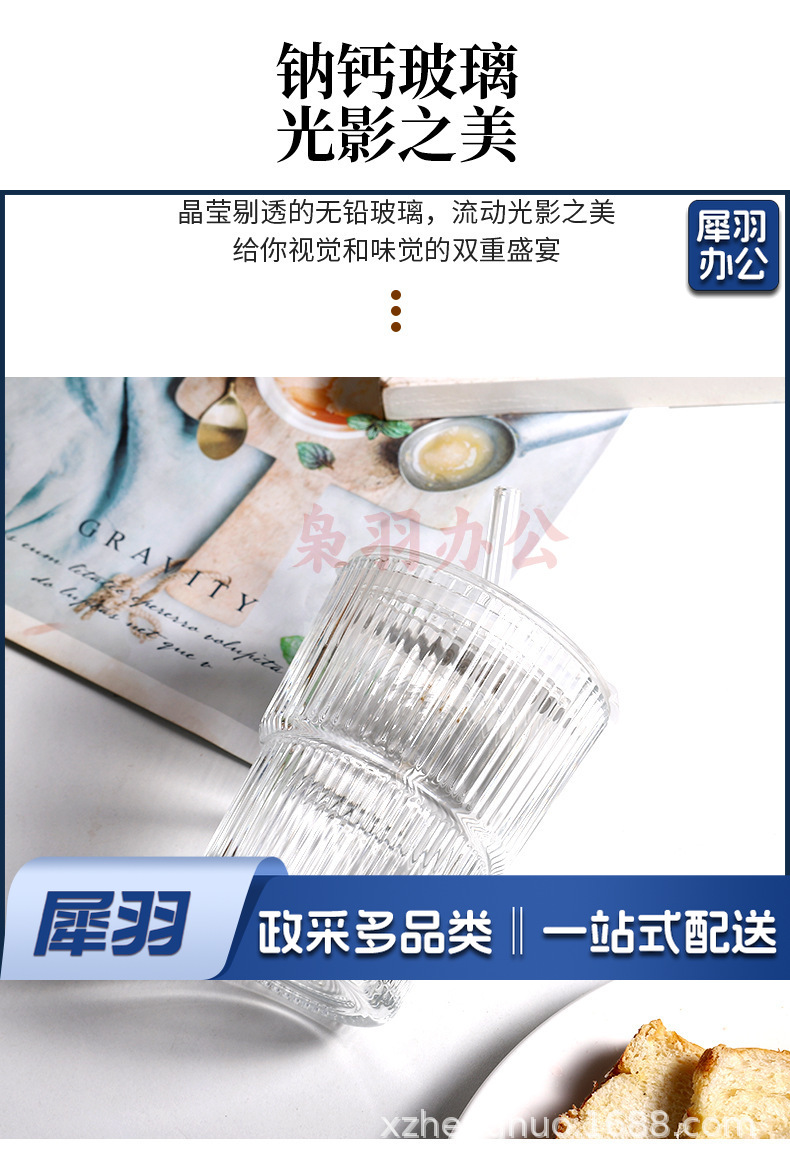 竖条纹竹节杯玻璃吸管咖啡杯子高颜值双饮杯地推礼品杯 ins风水杯