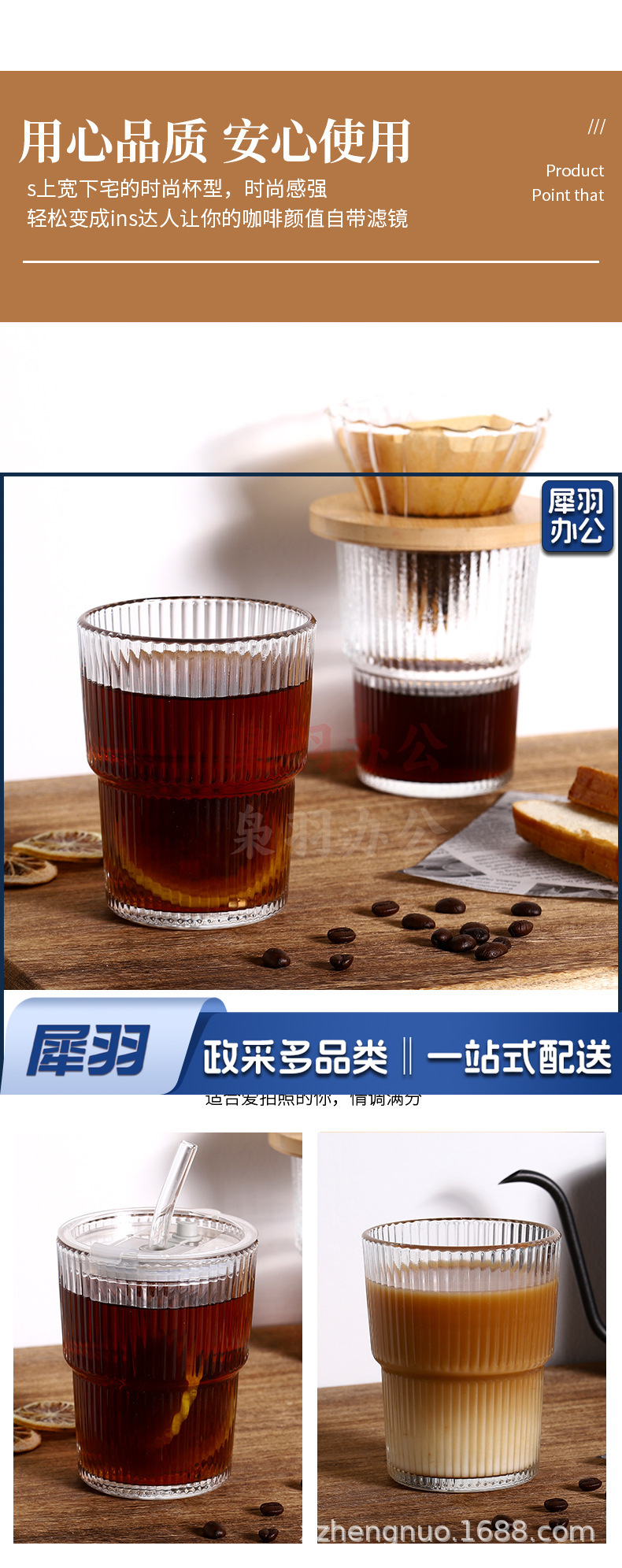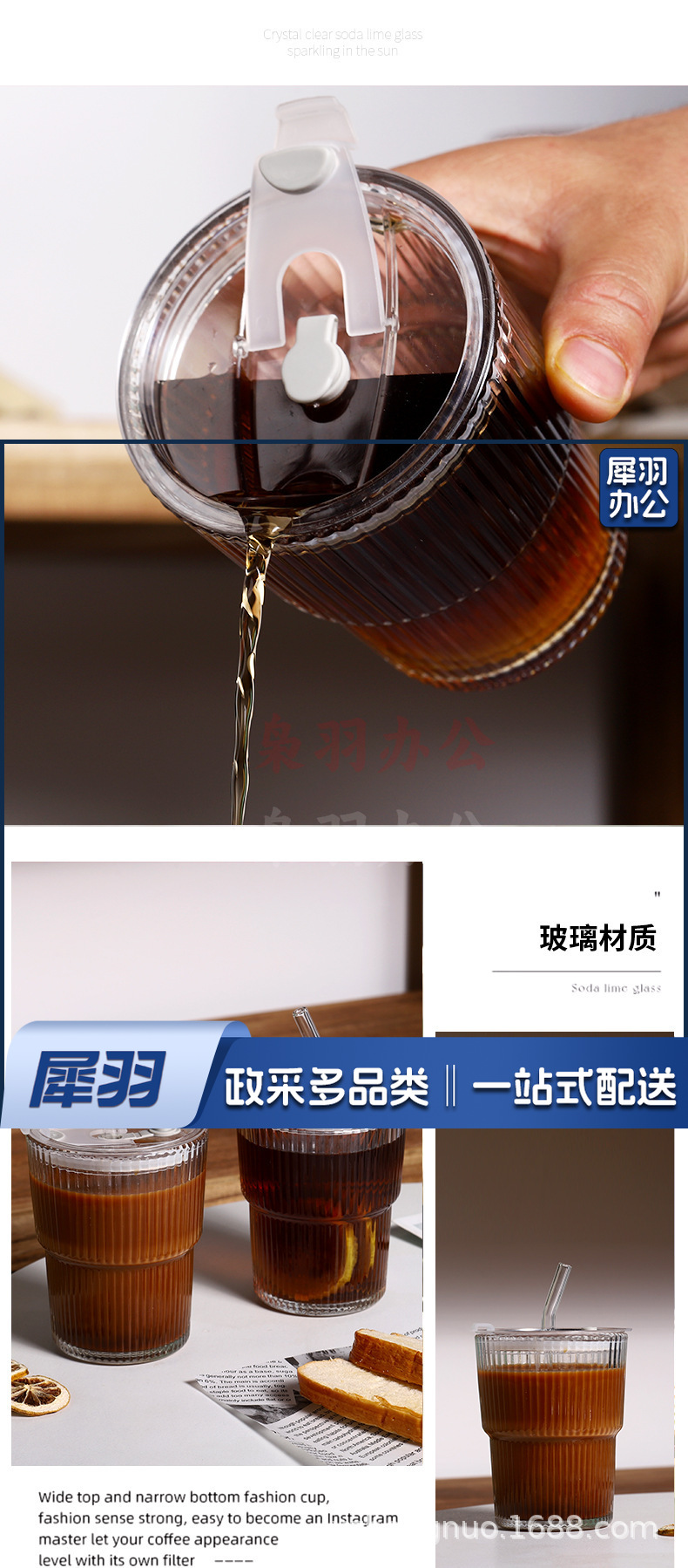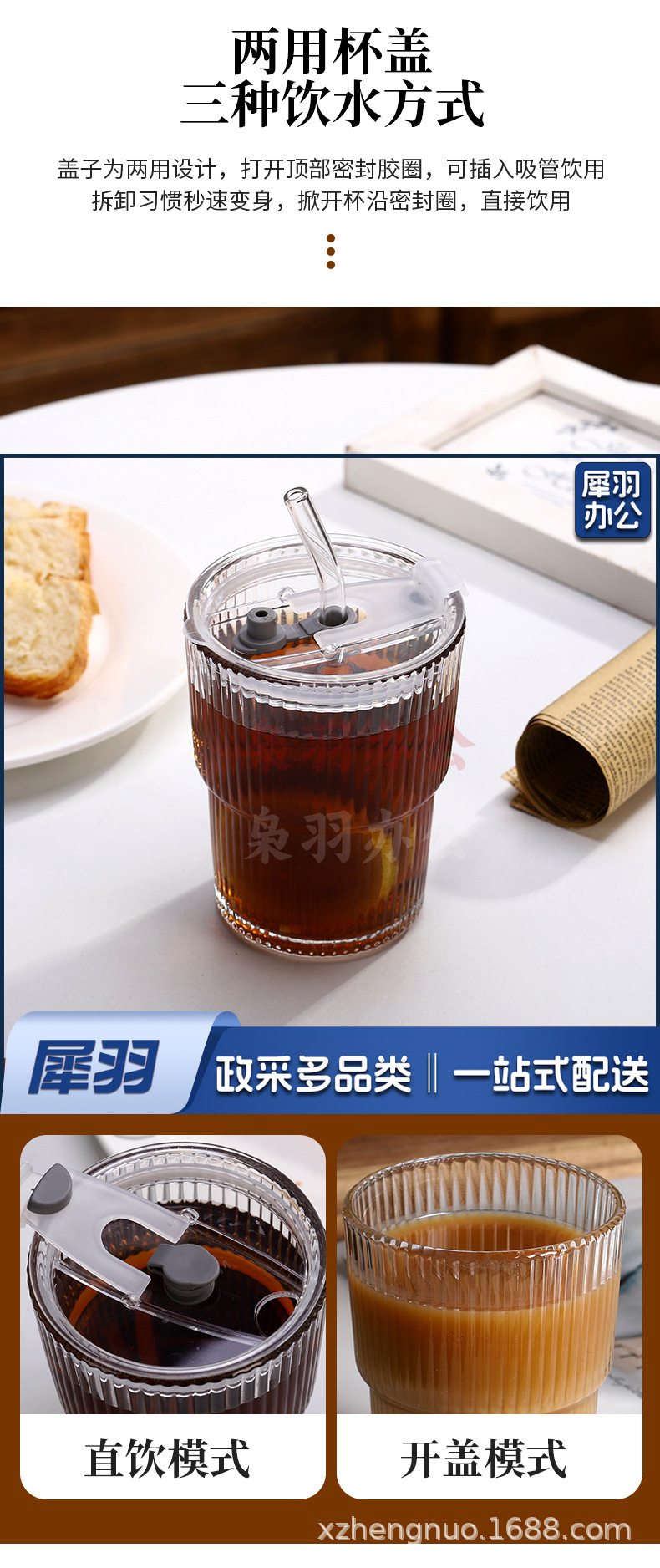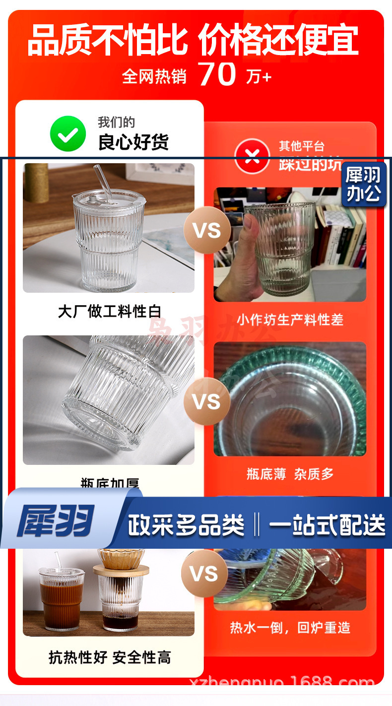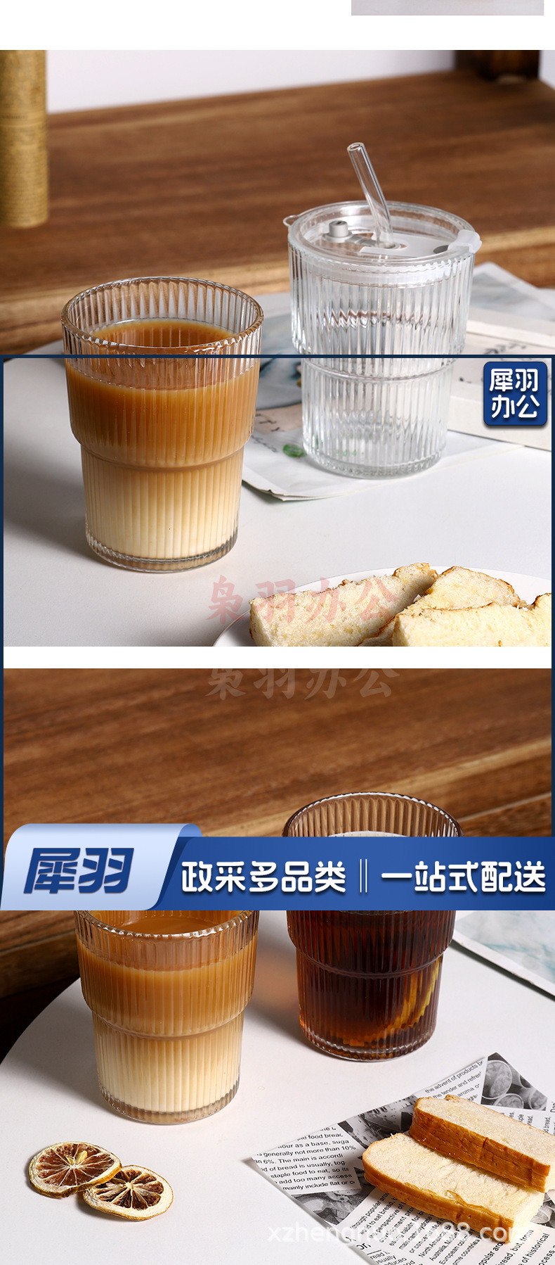 竖条纹竹节杯玻璃吸管咖啡杯子高颜值双饮杯地推礼品杯 ins风水杯