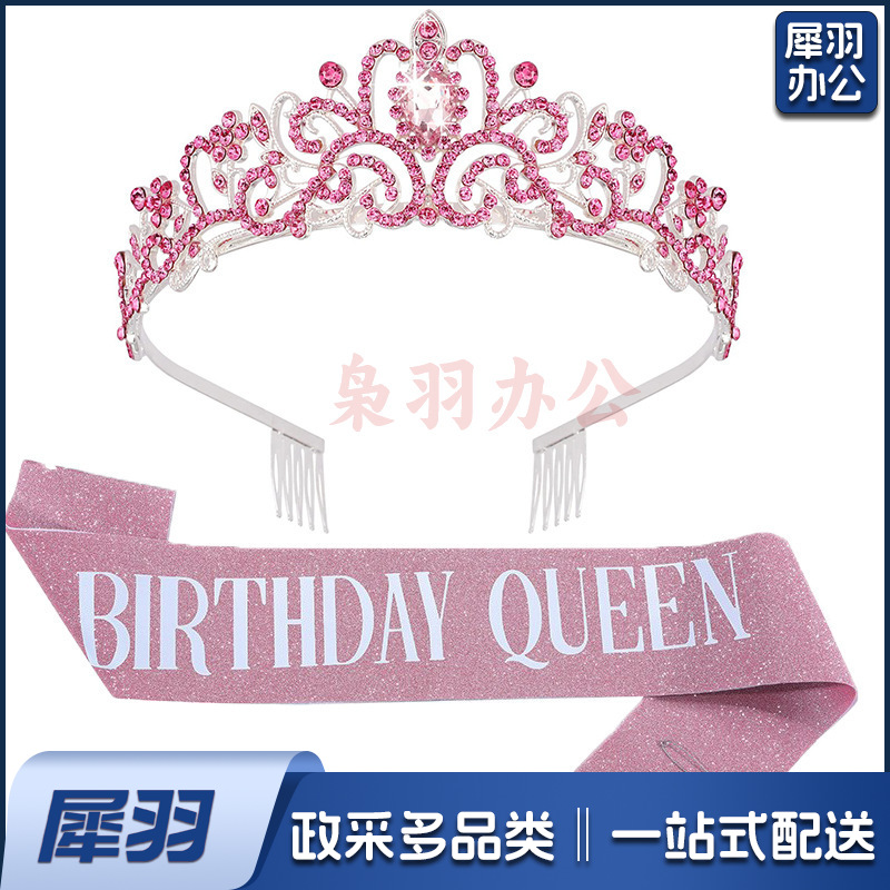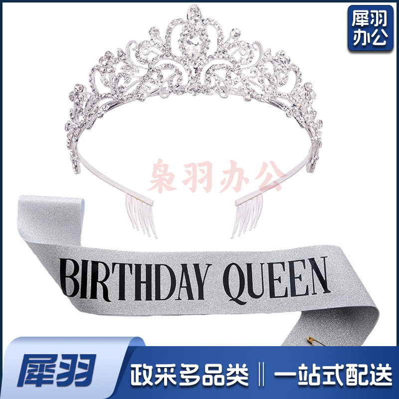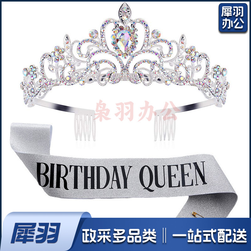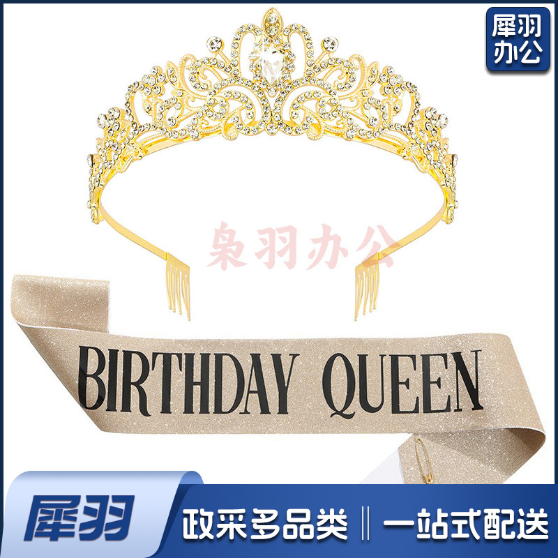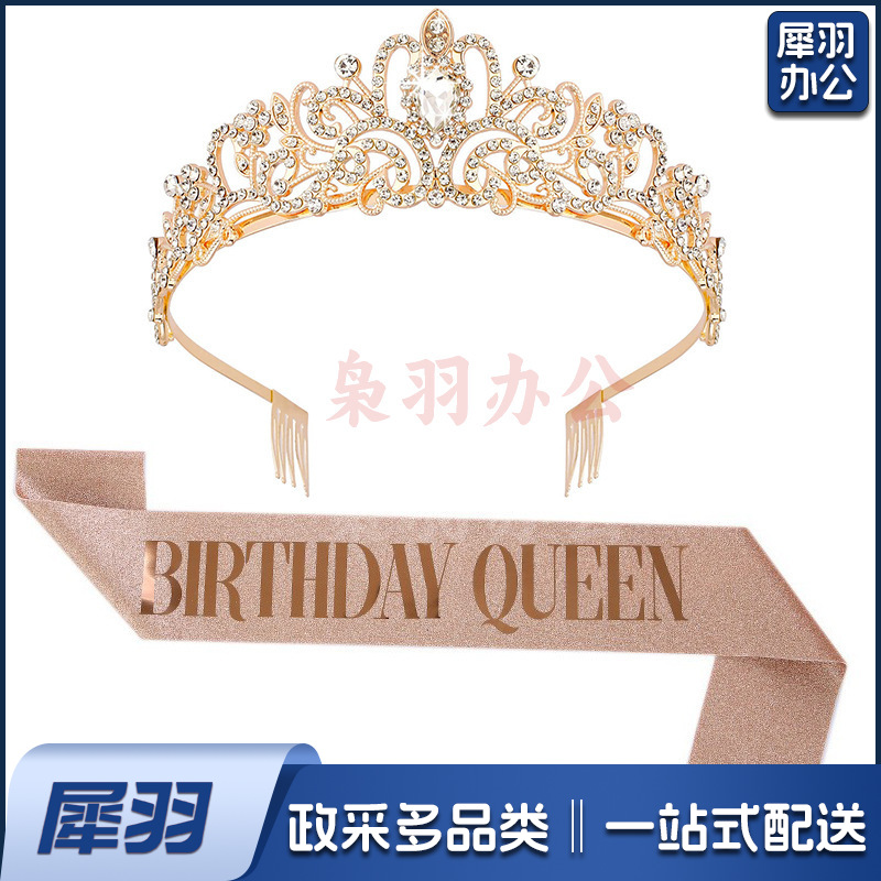 新款欧美时尚热卖水晶皇冠礼仪腰带绶带套装生日派对王冠头饰