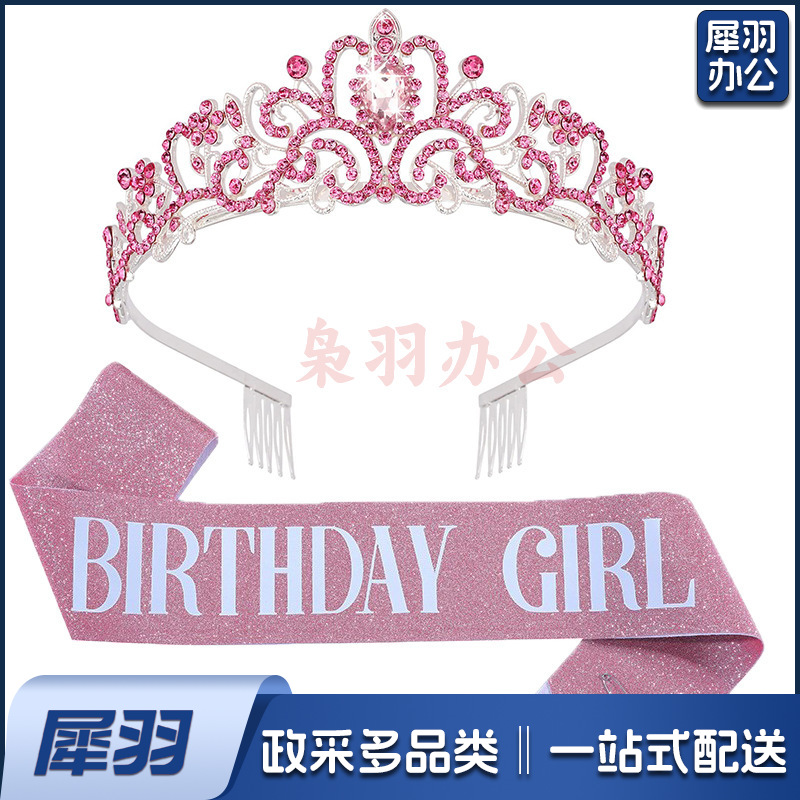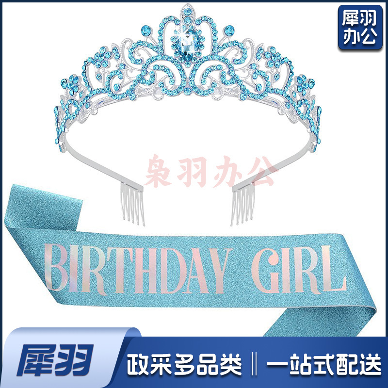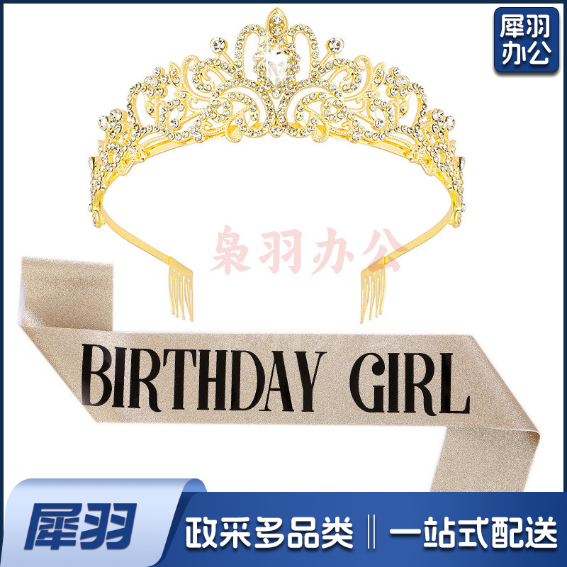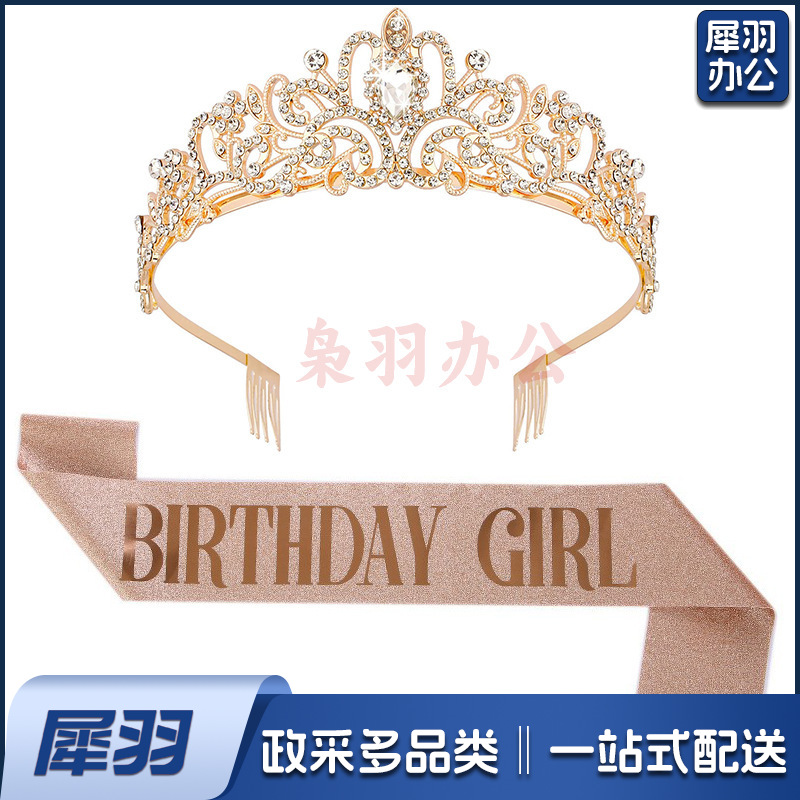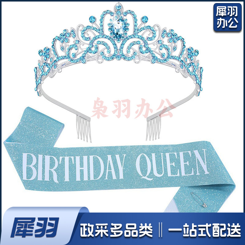 新款欧美时尚热卖水晶皇冠礼仪腰带绶带套装生日派对王冠头饰