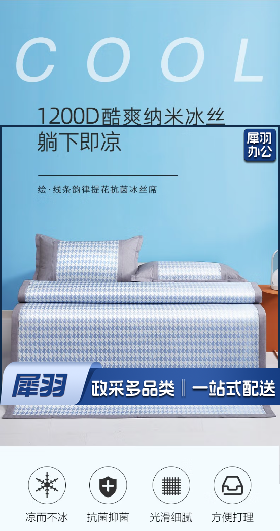 【宿舍专用】冰丝凉席 夏天学生宿舍90x190单人冰丝凉席【冰川灰】支持水洗丨抗菌防螨 0.9mx1.9m床丨送枕套*1丨两件套
