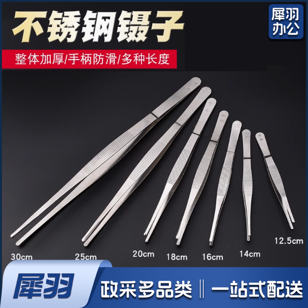 不锈钢镊子 防滑加长尖直头弯头带齿拔毛加厚加硬精密镊子20cm