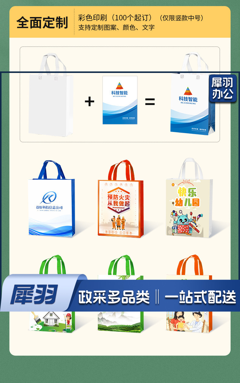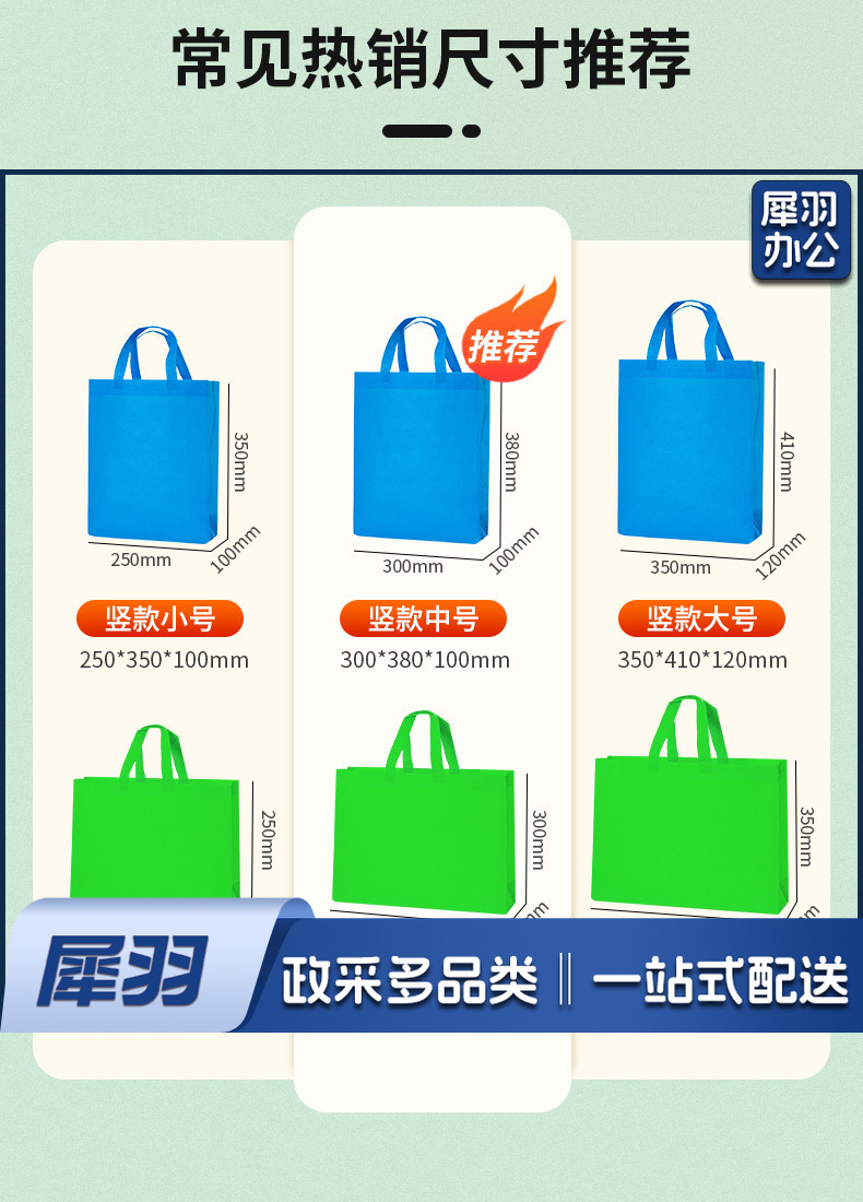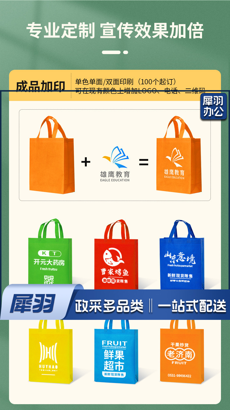 定制无纺布手提袋印刷LOGO环保袋子加厚耐用宣传定做(300mm*370mm)