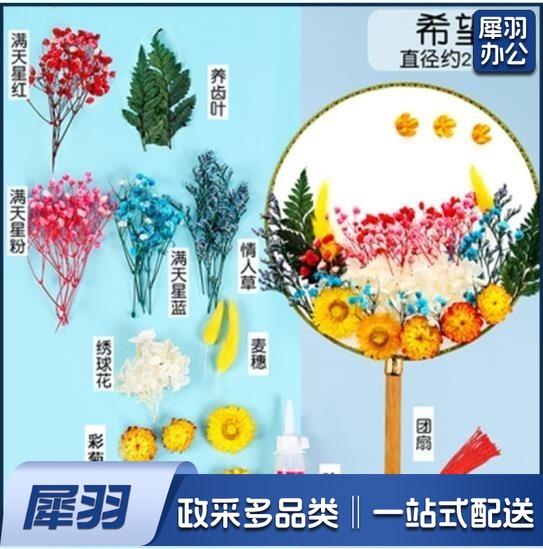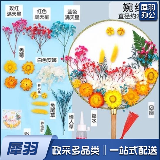 干花团扇diy材料包永生花中国风扇子幼儿园手工创意