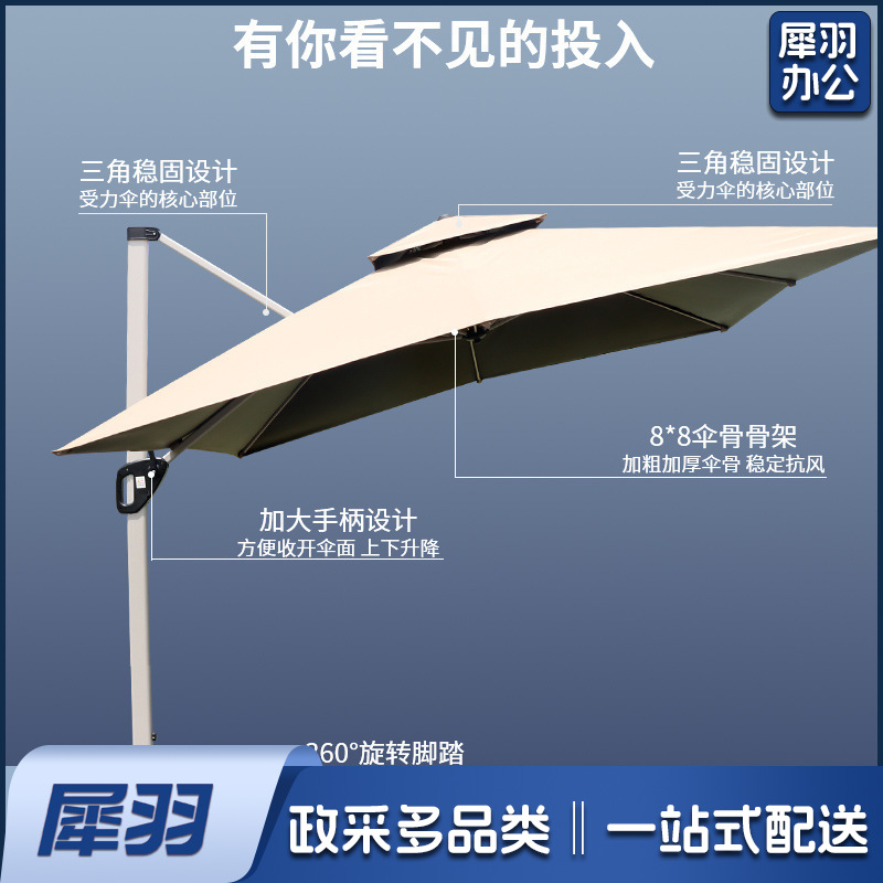 户外遮阳伞3米航空铝方伞+200斤大水箱 庭院伞商用咖啡厅太阳伞室外罗马伞别墅花园摆摊户外伞