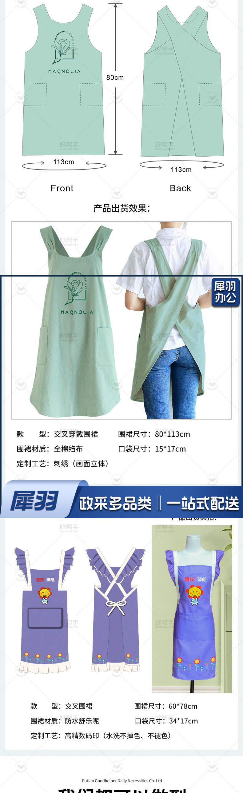加厚防水围裙定制可印logo防油污家用厨房防水工作围裙定制宣传咖啡色【170g/㎡防水美舒尼】1个口袋