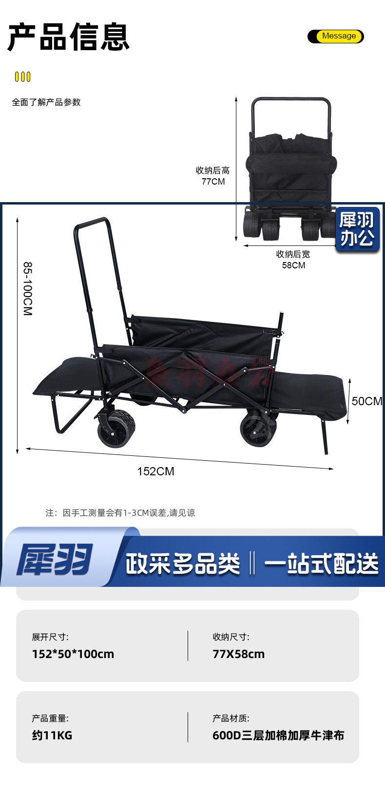 户外露营车可双开小推车儿童可躺聚拢越野轮营地车野营折叠小拖车基础款5寸