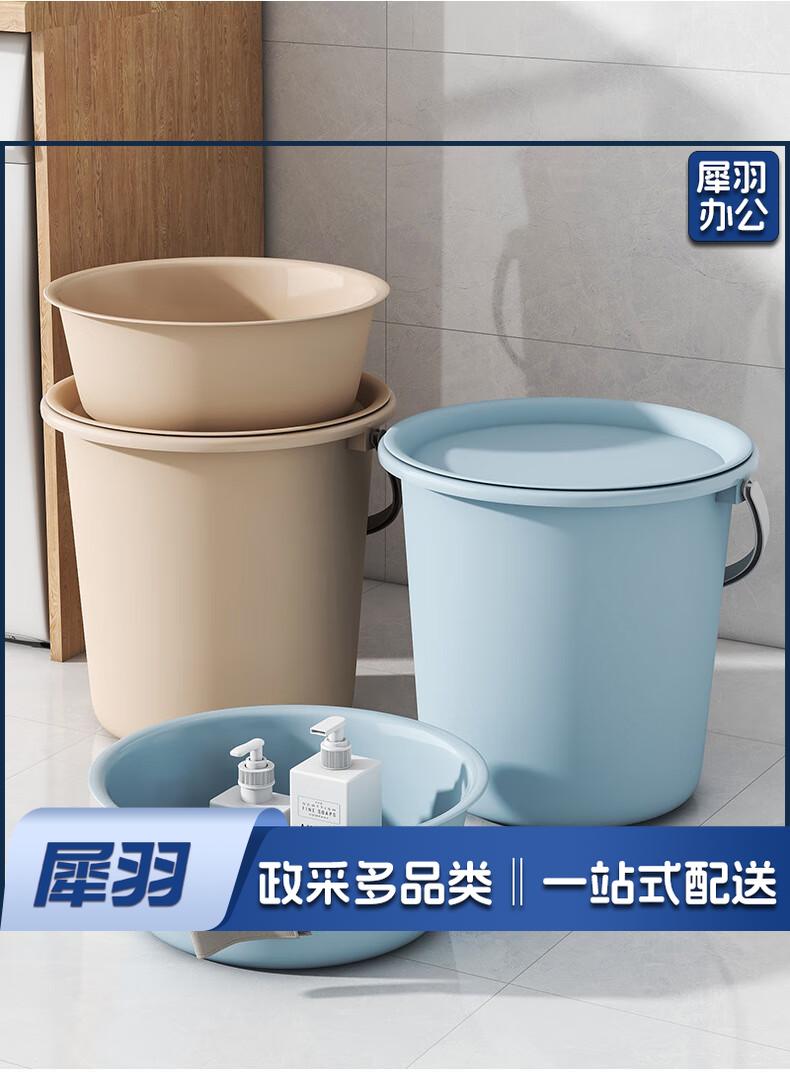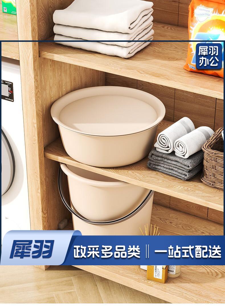 家用水桶塑胶桶加厚带盖洗衣桶家用塑料桶学生宿舍储水洗澡桶 18L加大号卡其磨砂带盖/32*34CM 1个装默认规格