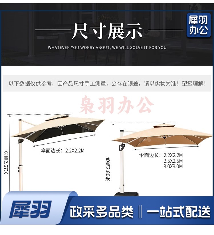 户外遮阳伞2.2米铁方伞+130斤大水箱【颜色下单备注】庭院伞商用咖啡厅太阳伞室外罗马伞别墅花园摆摊户外伞