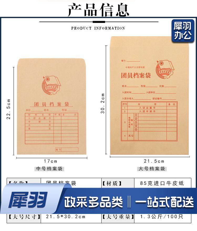 L-120 大号团员档案袋A 4加厚加硬大容量团员档案袋