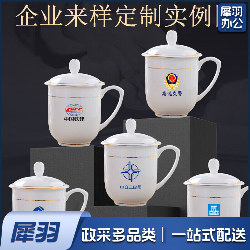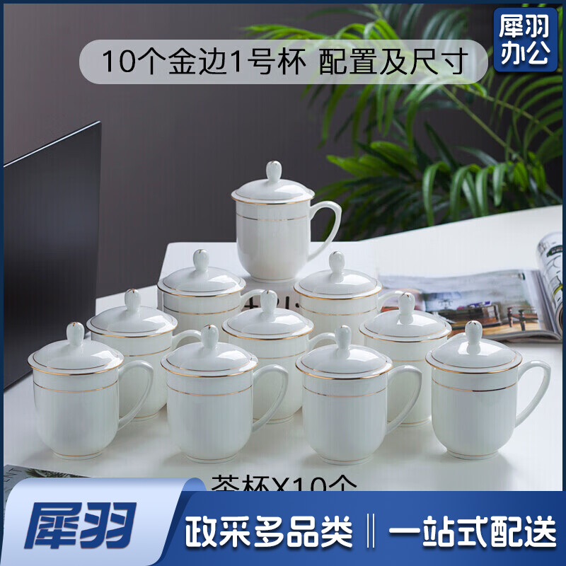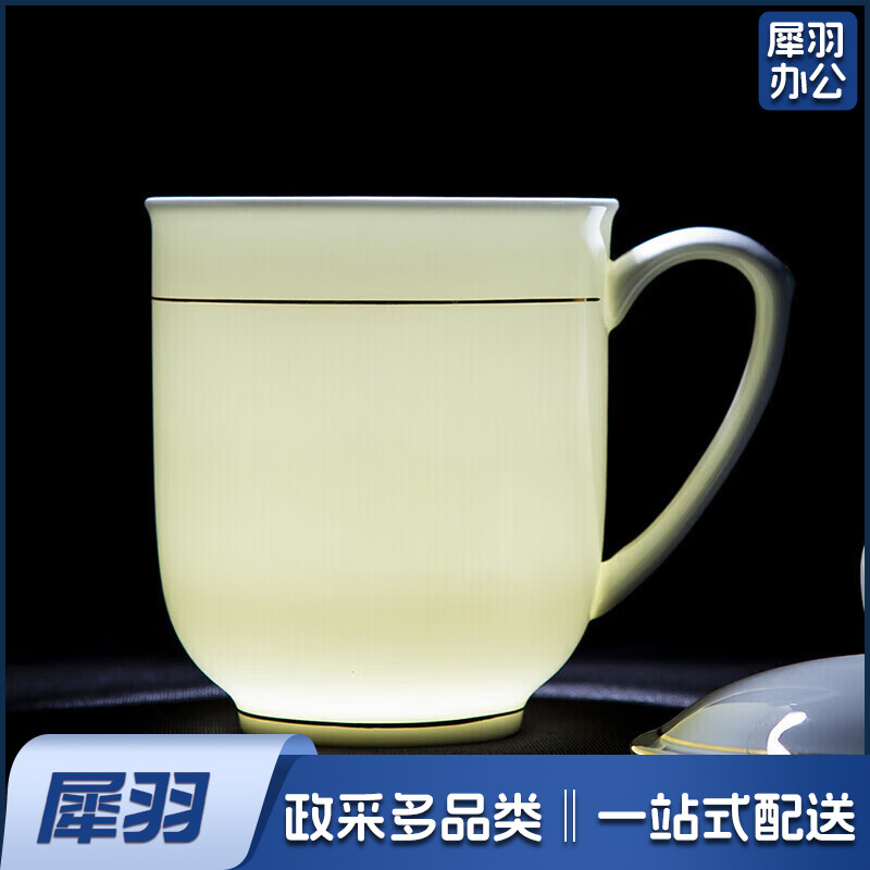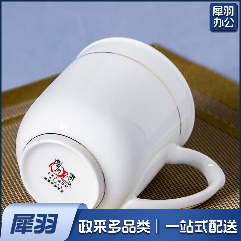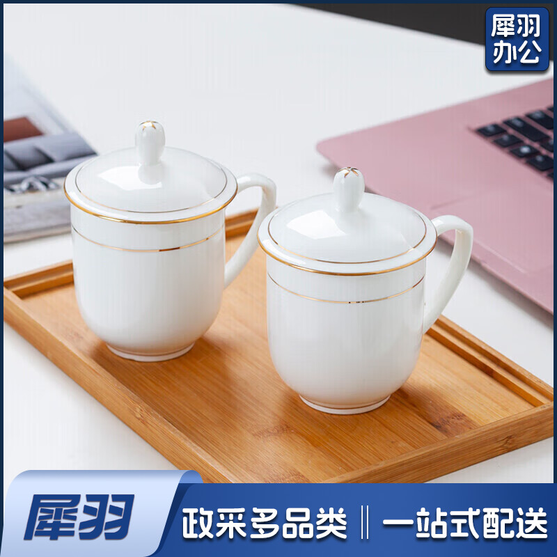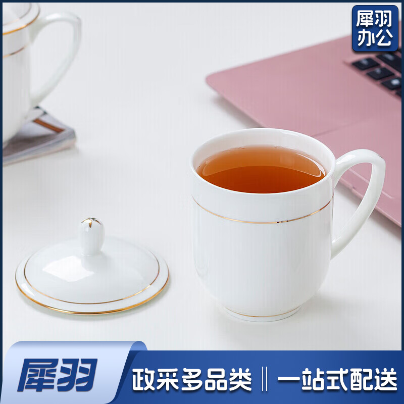 茶杯 骨瓷办公杯会议杯陶瓷盖杯开会杯子商务会议办公水杯带盖 单只装