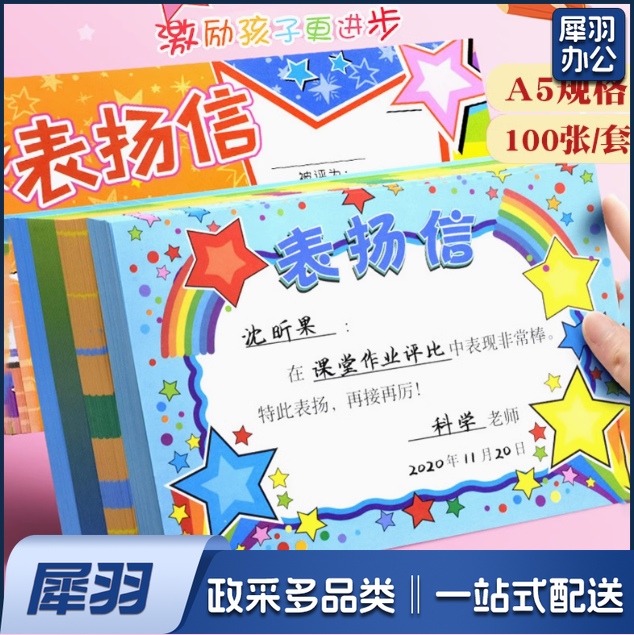 幼儿园荣誉奖状儿童喜报A5铜版纸 奖状 100张/套