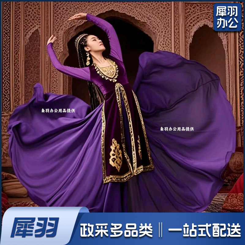 维吾尔族舞蹈服丝绒大摆裙女款XY20