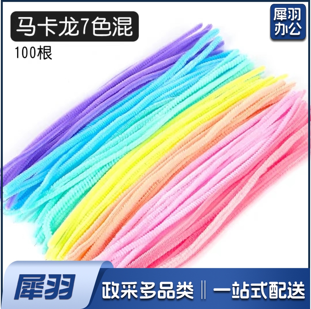 混色马卡龙加密绒扭扭棒毛根条diy彩色毛绒条手工创意益智玩具网红花束制作(1把100根)(如需单一颜色可备注)
