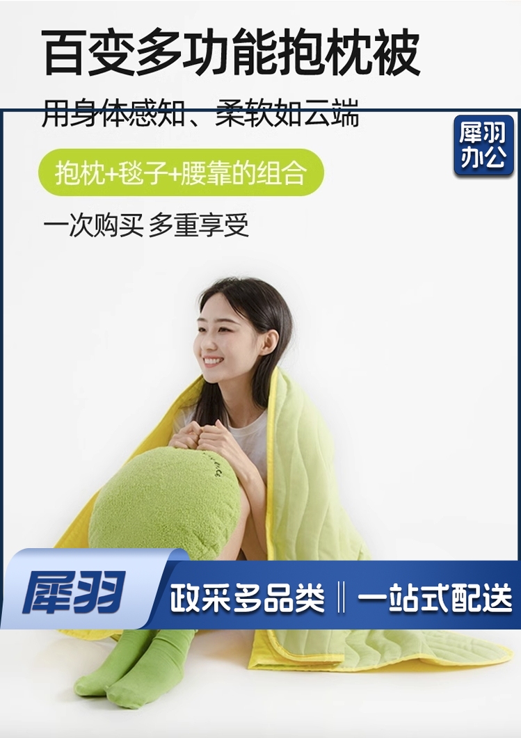 觉轻松两用抱枕毯子二合一夏凉被枕头 绿色