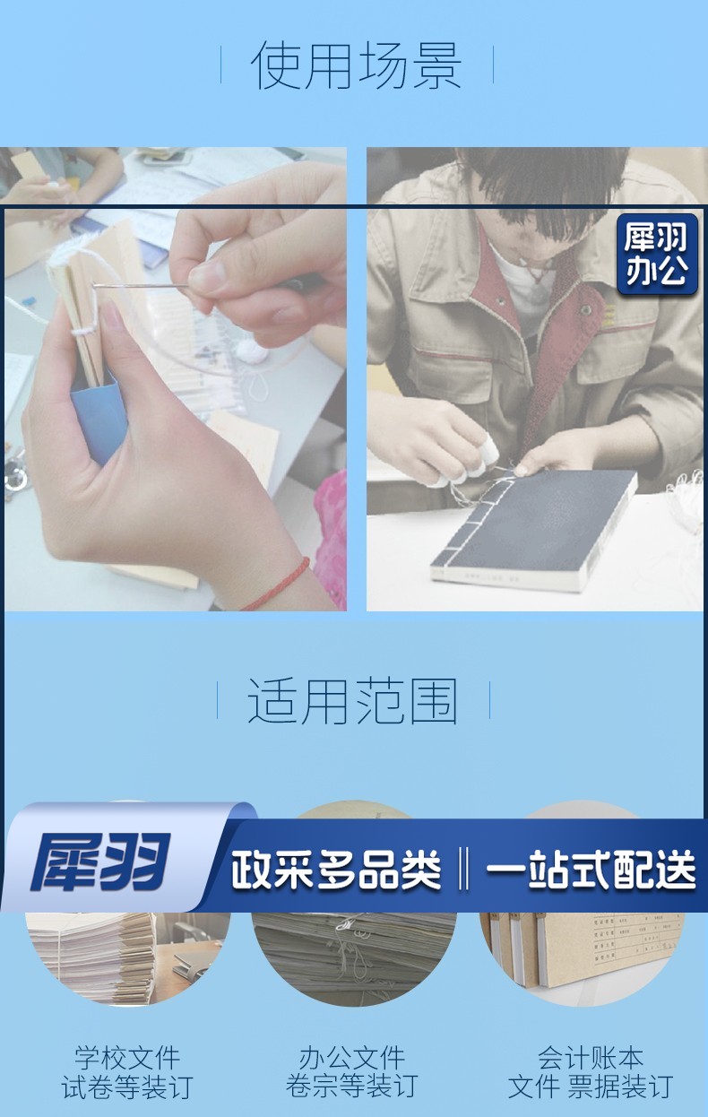 20团凭证装订线财务会计账本装订白棉线手工针线档案线绳 粗线档案袋勾锥凭证封面用