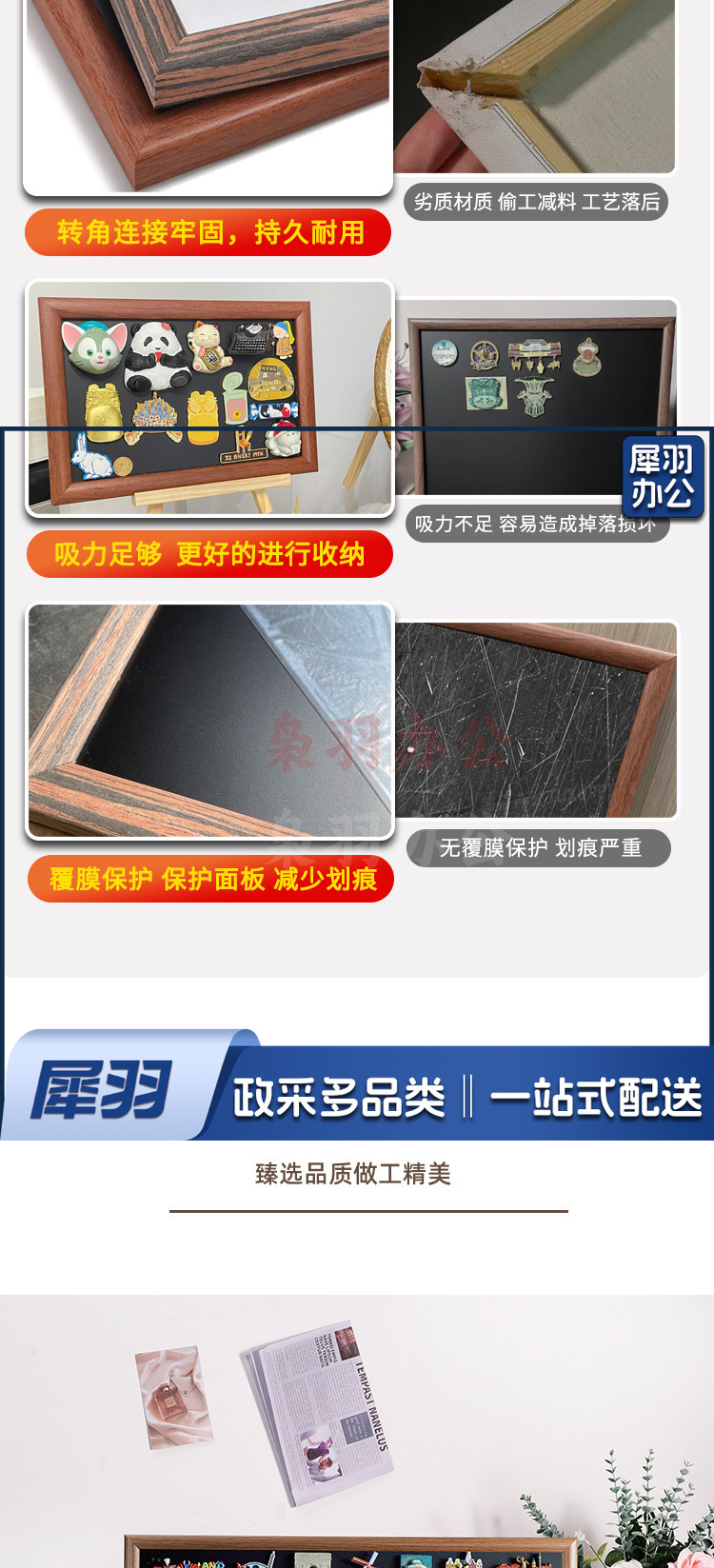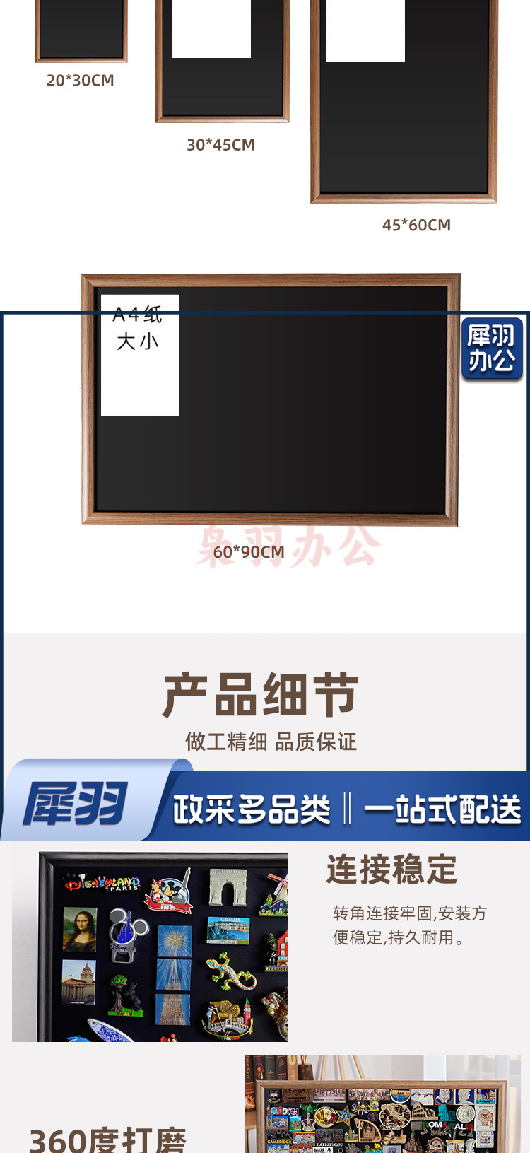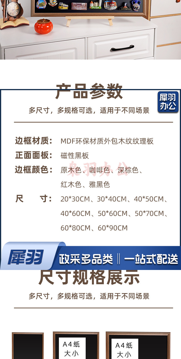 磁吸化妆墙磁铁小黑板化妆品眼影口红桌面收纳置物板冰箱贴展示板咖啡色单面磁吸黑板【送6种配件】50×60cm