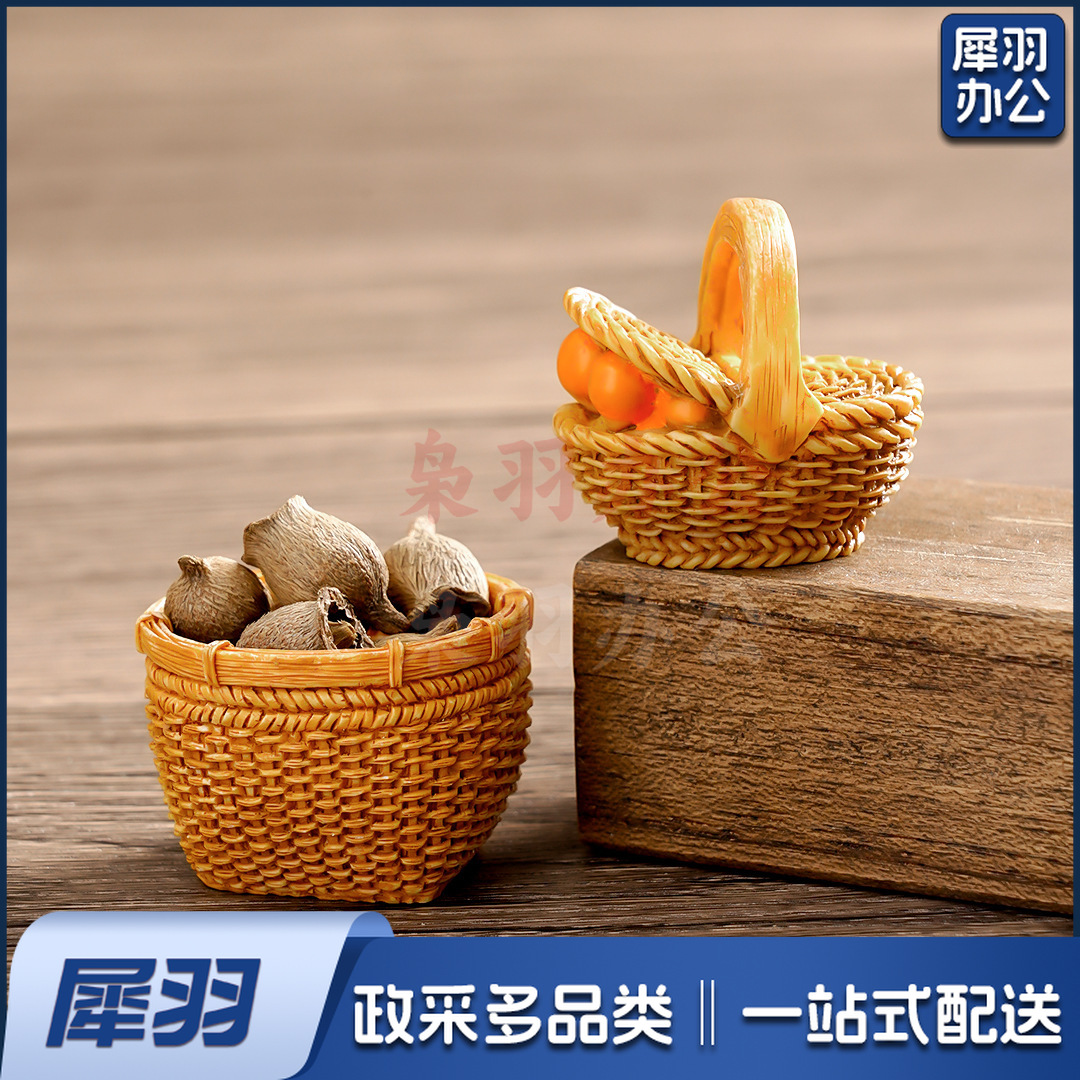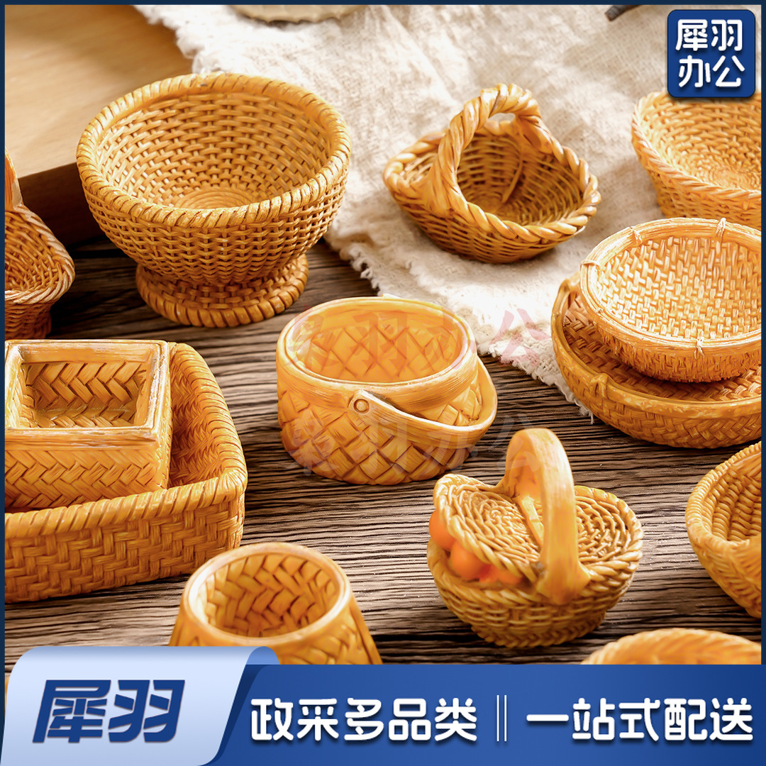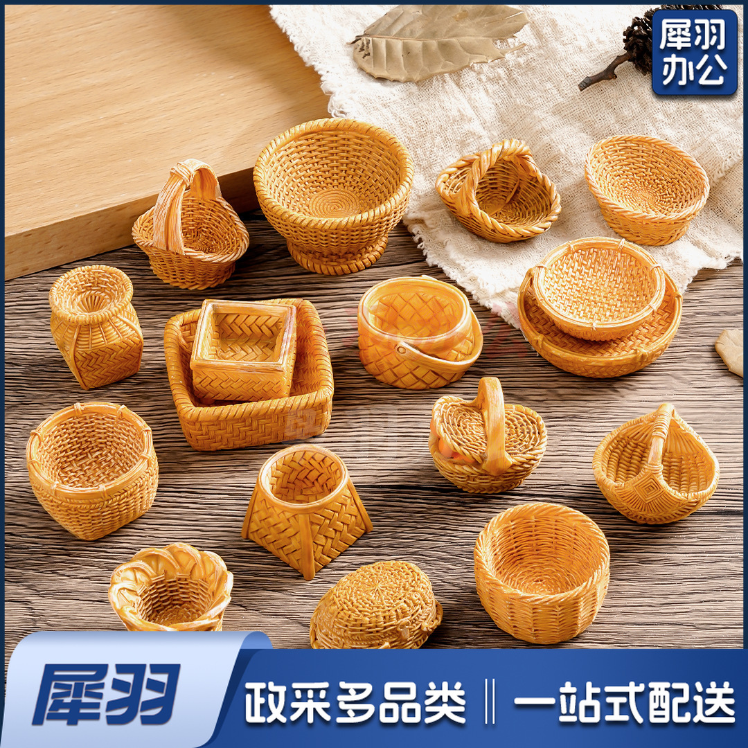 创意仿真藤编篮子竹编筐 diy装饰品配件迷你拍摄造景收纳框小摆件