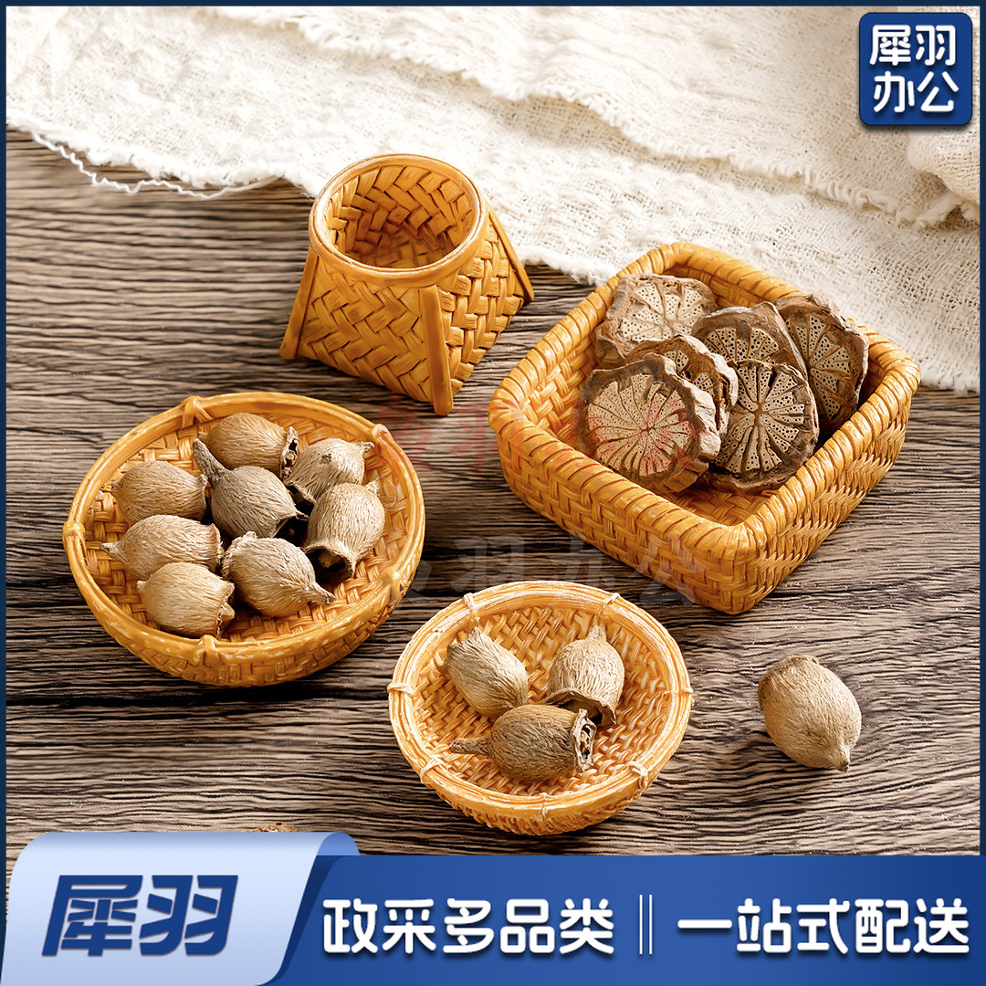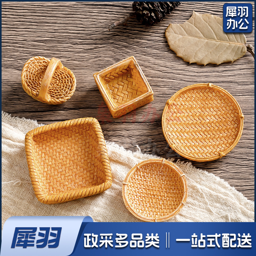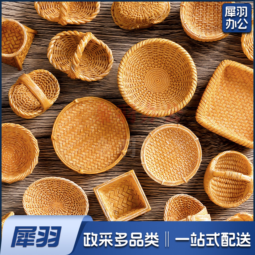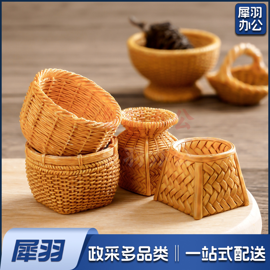 创意仿真藤编篮子竹编筐 diy装饰品配件迷你拍摄造景收纳框小摆件