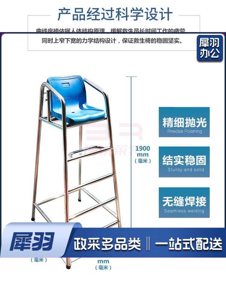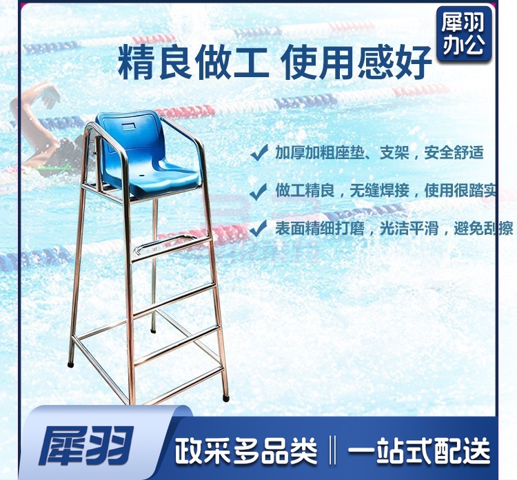 1.9米高泳池设备不锈钢救生椅泳池救生员椅子304观察了望台 游泳设备