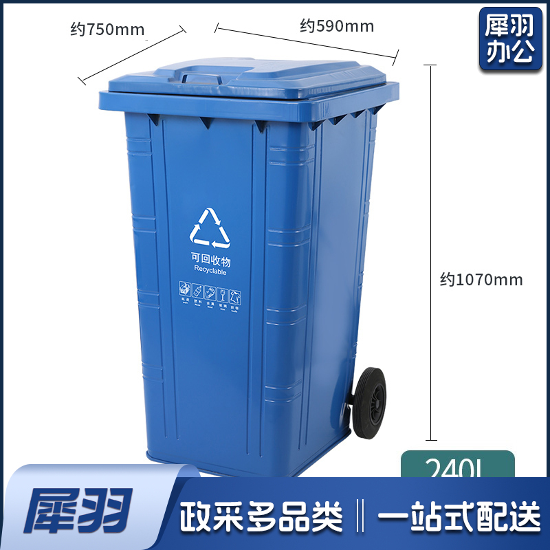 垃圾桶240L 户外 商用加厚 防易燃 可挂车装卸 红绿蓝黑颜色可选