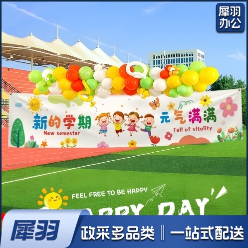 幼儿园开学季挂布教室黑板开学典礼装饰横幅背景布仪式感场景布置四角打孔(四角打孔四角打孔300cmx60cm)