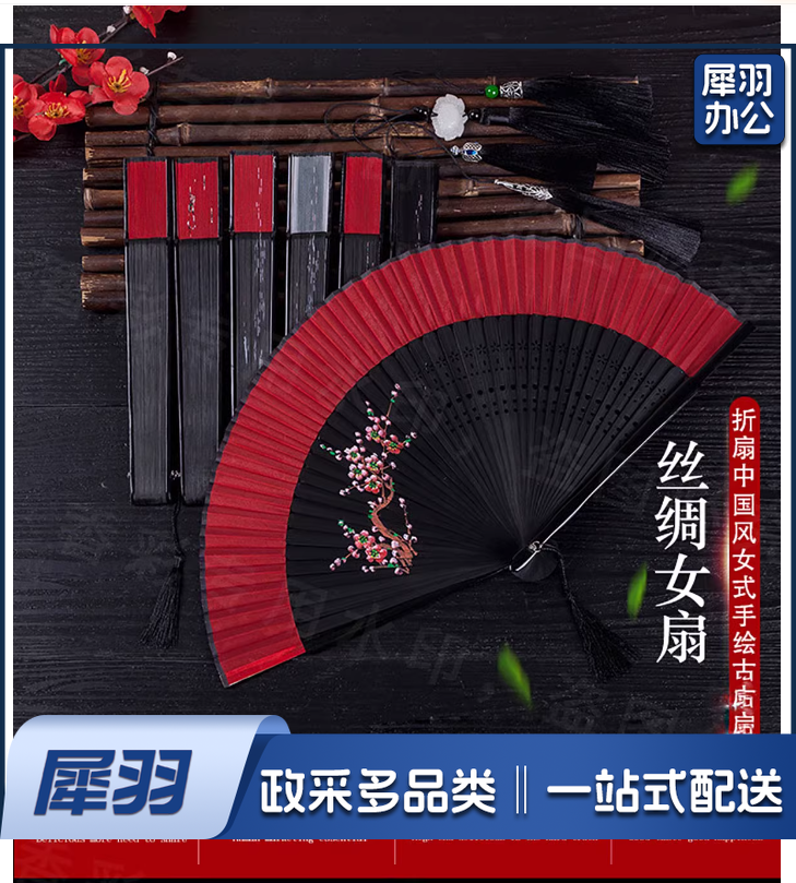 扇子古风汉服女旗袍走秀小折扇中国风跳舞蹈扇古典折叠古装扇子夏 10:;个