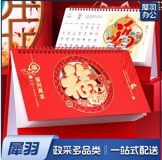 红色台历2025年蛇年月历计划本式大格子日历桌面摆件订制大号喜庆日历礼品定制企业广告logo 福到万家