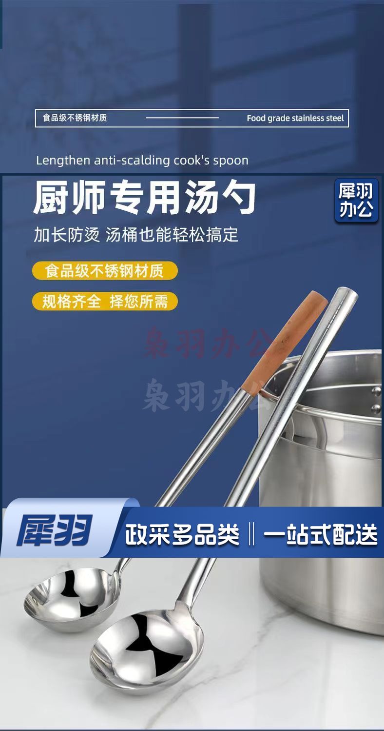 10两钢柄[亮光加厚]不锈钢炒勺厨师专用炒菜勺子家用长柄老式汤勺大号商用粥勺分菜勺