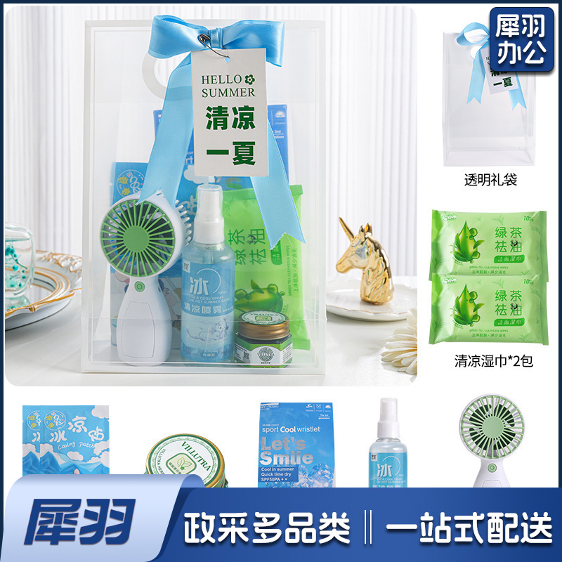 夏日防暑降温包套装礼品公司送员工福利夏季清凉礼包护士节(冰点套餐7(风扇+冰袖+清凉喷雾+蚊不叮+冰凉贴+吊牌))