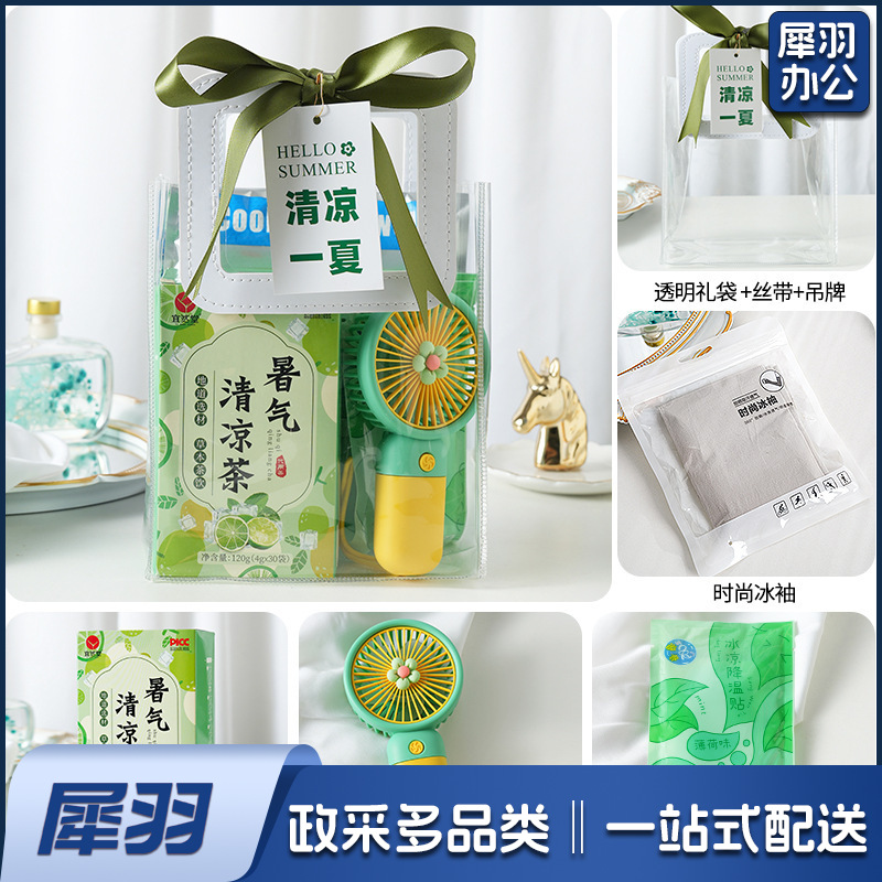 夏日防暑降温包套装礼品公司送员工福利夏季清凉礼包护士节(冰点套餐9(风扇+香氛皂+驱蚊膏+清凉喷雾+冰袖+冰凉贴+吊牌))