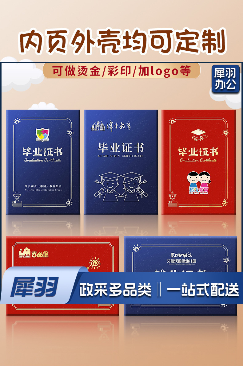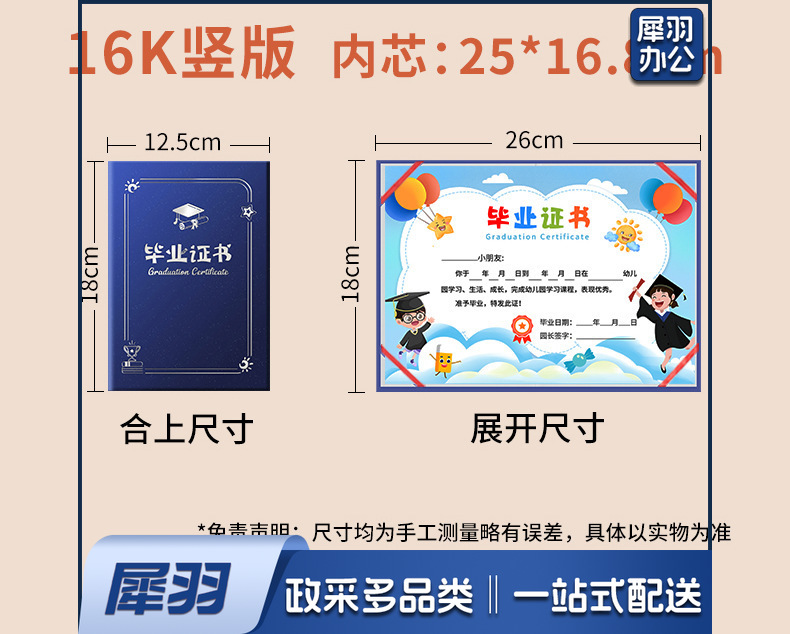 幼儿园毕业证书离园纪念册外壳大班小朋友证书奖状外壳(【16K竖版】蓝色磨砂丨03内页)内页可选
